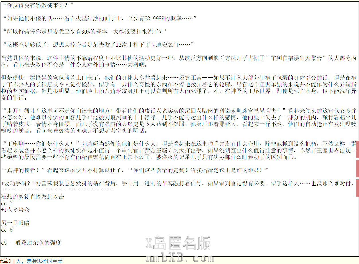 “权力蒙蔽了你的眼睛,让你变得自大愚蠢,我在为了帝皇行事。”随着血液逐渐凝固,星际战士的伤口正在缓慢复原,他终于开始舍得从牙缝里挤出了几个字。而这几个字看起来有些糟糕,如果每个人都认为自己是忠诚的,那么似乎只有通过一些方法,让一方主动承认自己并不忠诚。