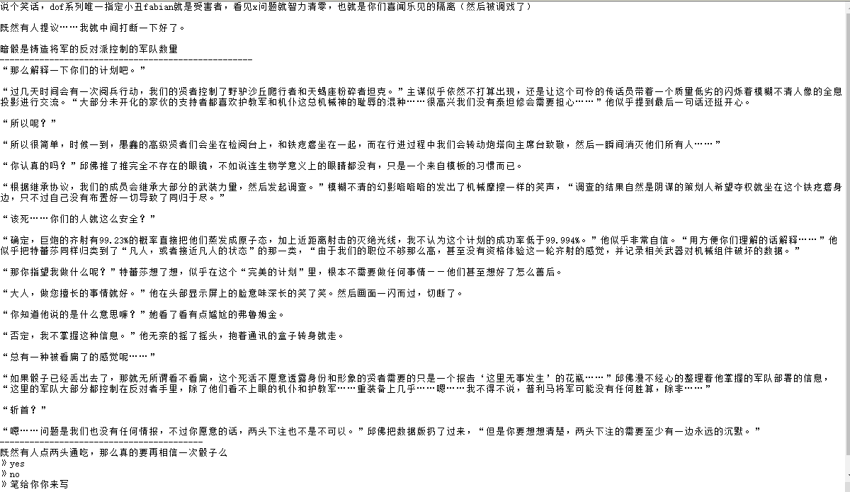 “所以就是吃人的机器咯。”特蕾莎并没有兴趣和他们纠结文字游戏,“这是一个会消耗人口的设备……而现在给你们流血的星界军连忠嗣学院的维护都快找不到人了,更别提新兵。”她轻松地指了指天上,“你看着办咯?”