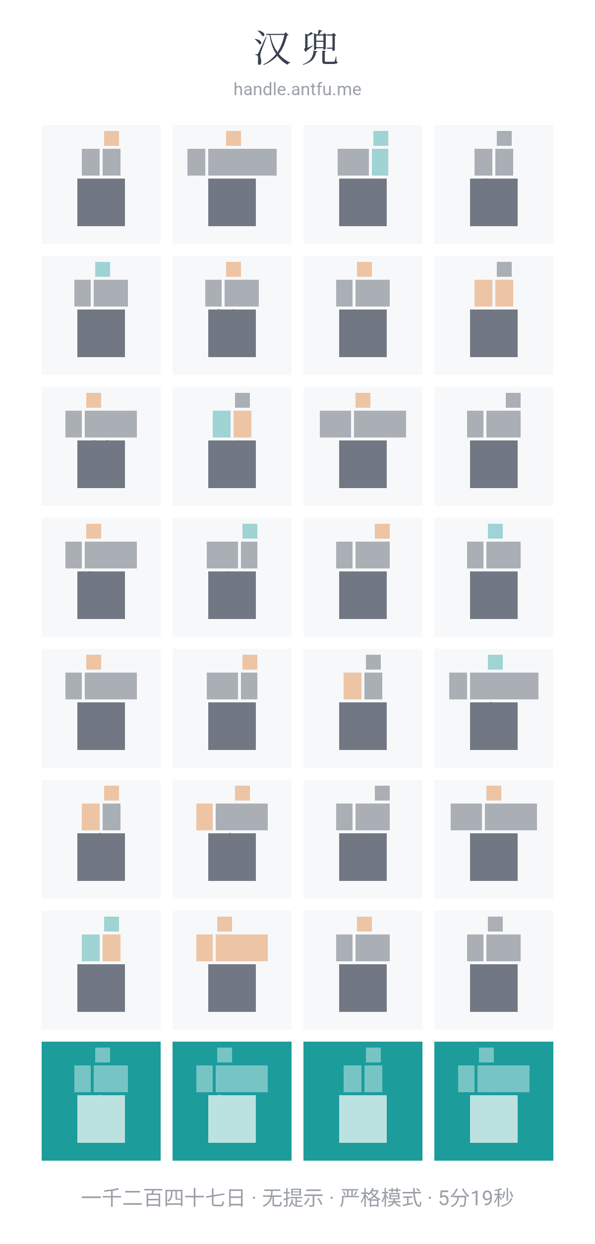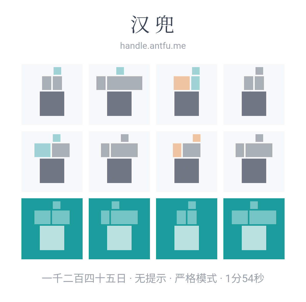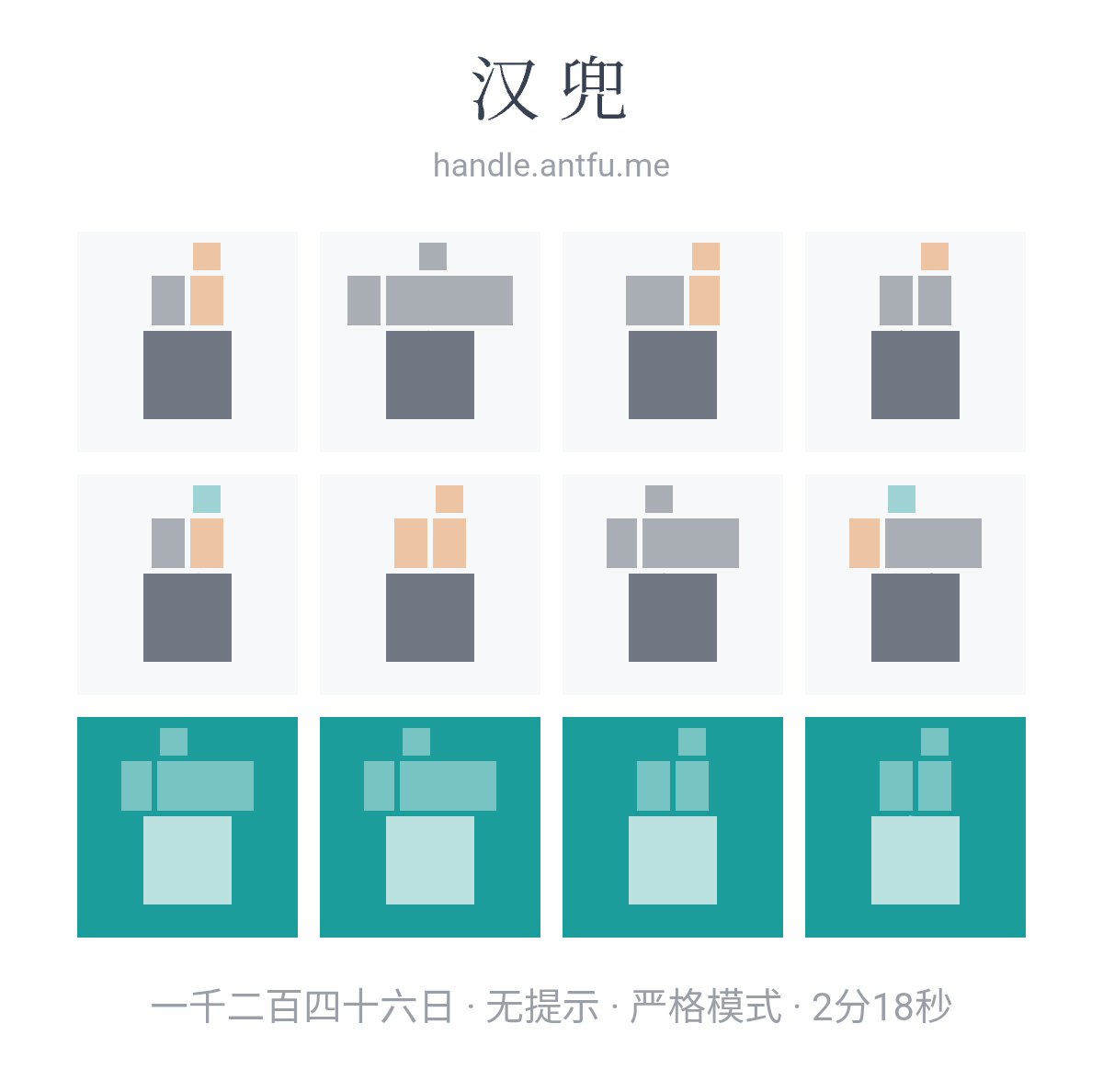 汉兜(https://handle.antfu.me/)是一个通过声母、韵母和声调猜成语的游戏。