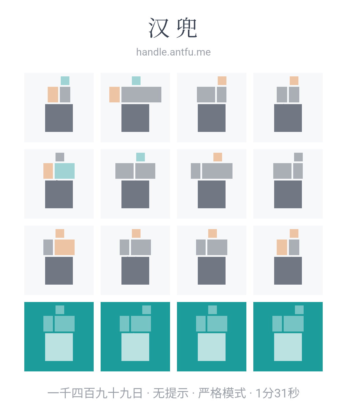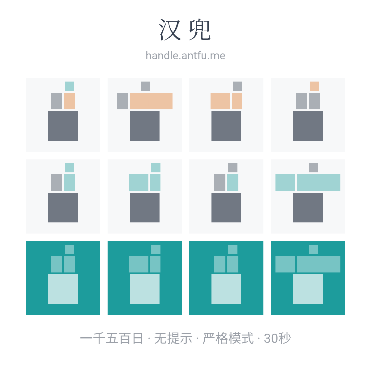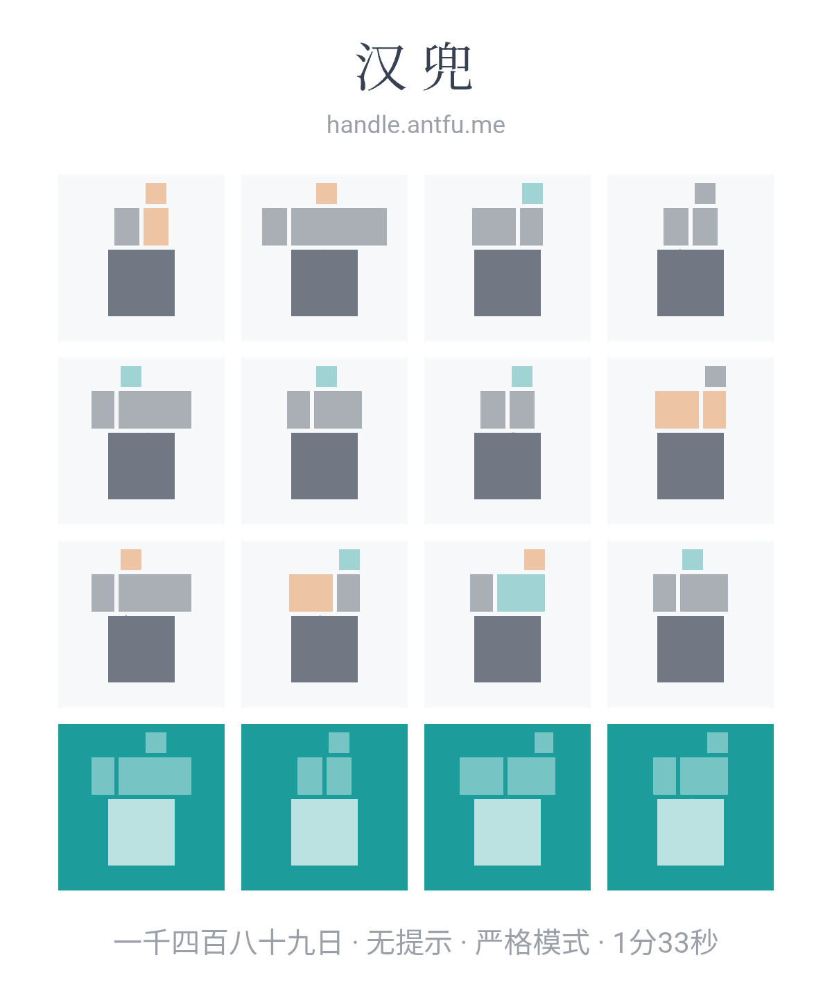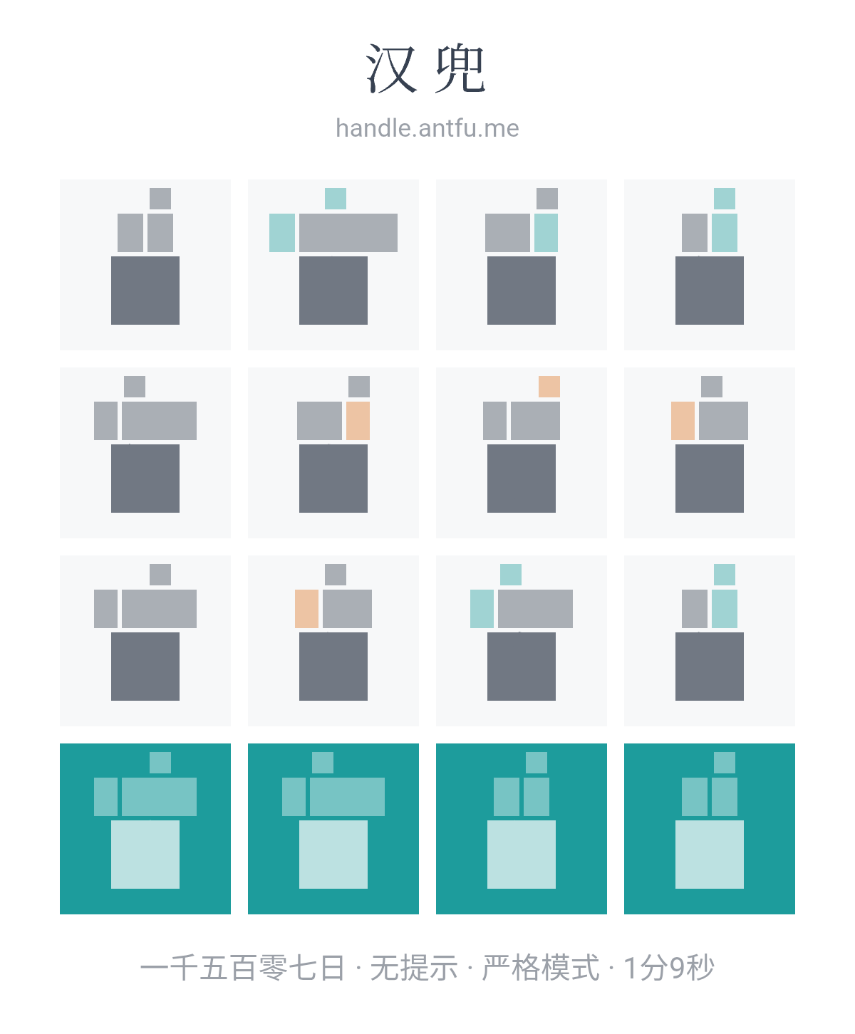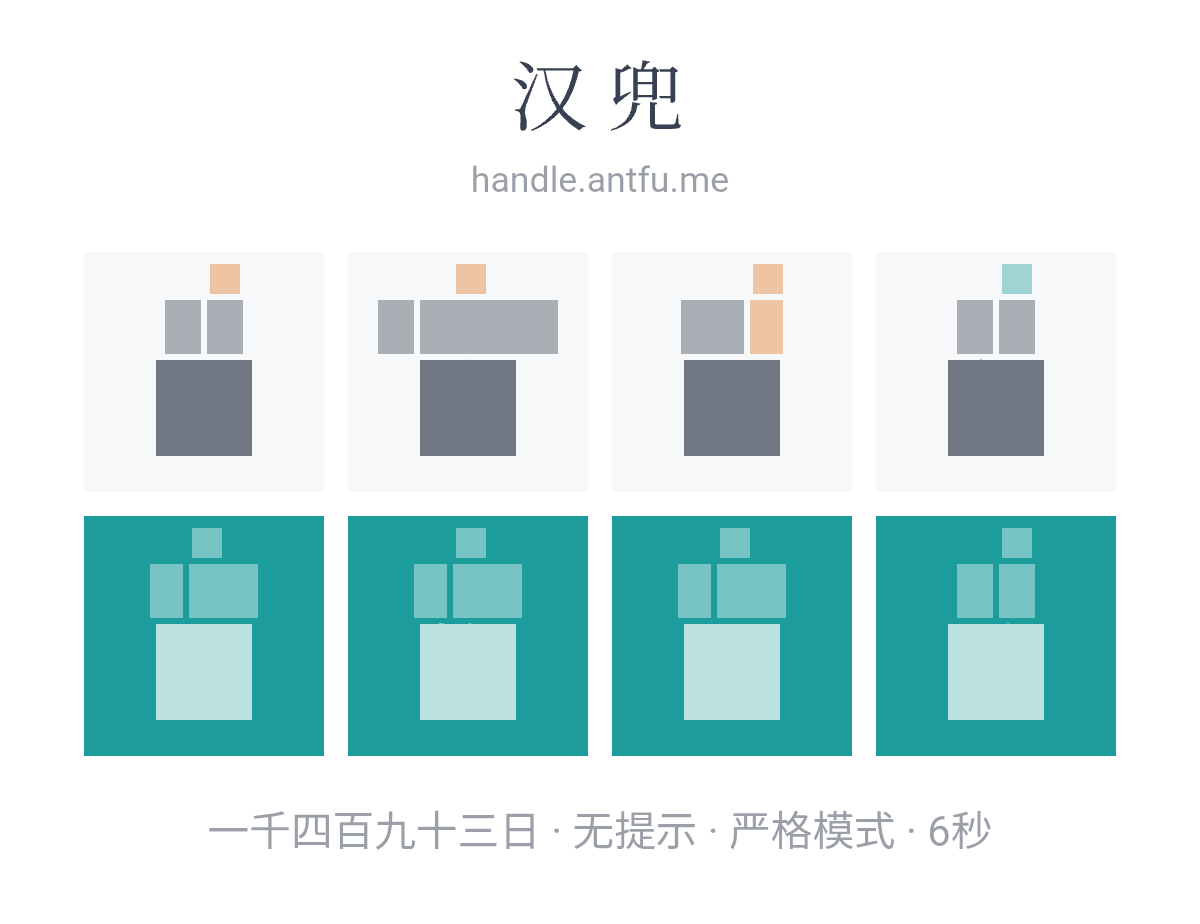 汉兜(https://handle.antfu.me/)是一个通过声母、韵母和声调猜成语的游戏。