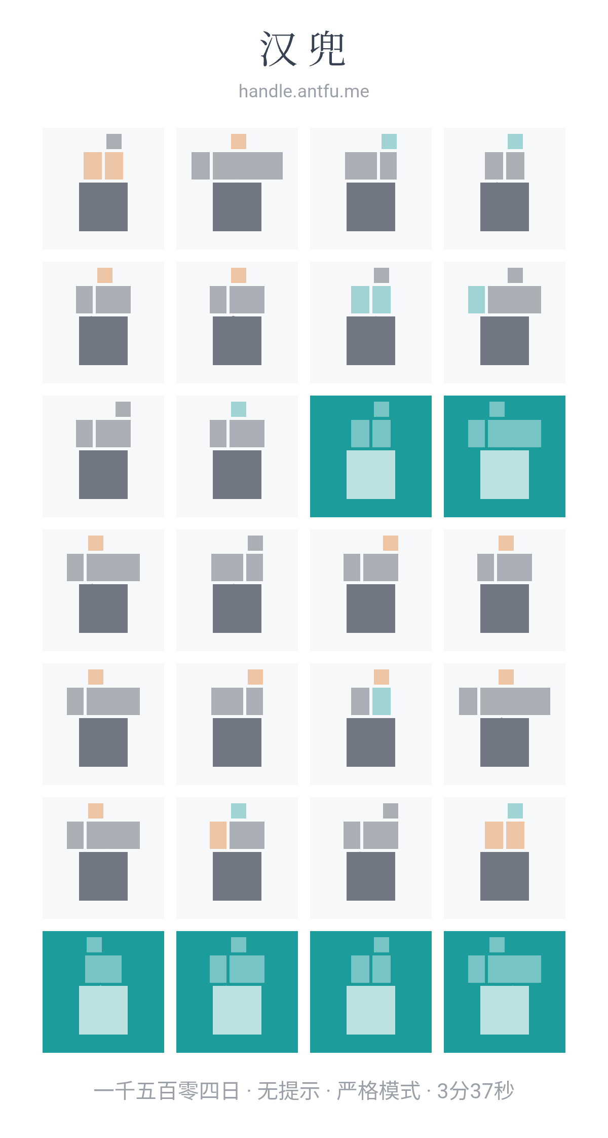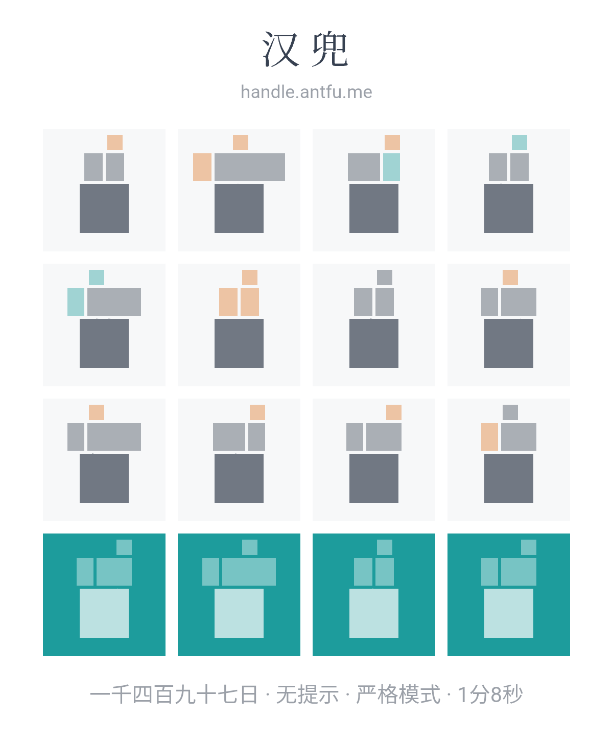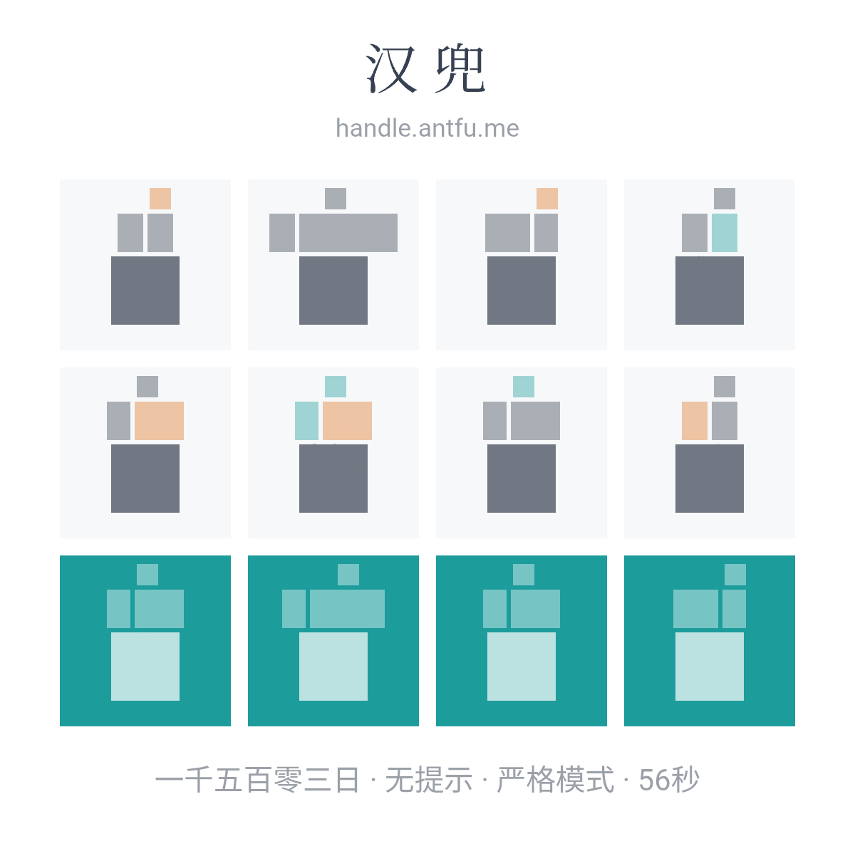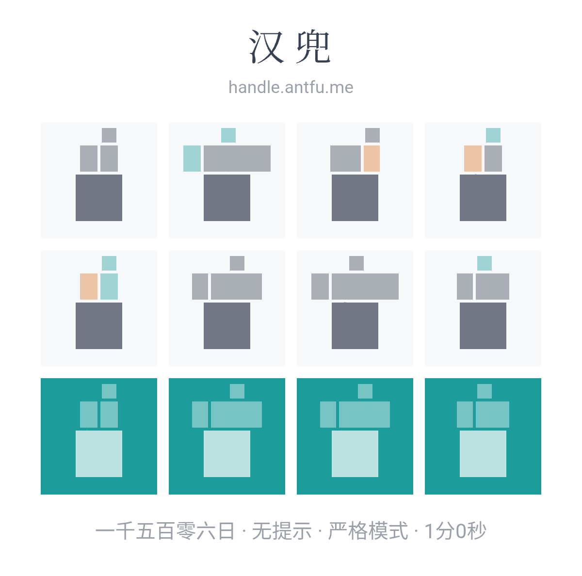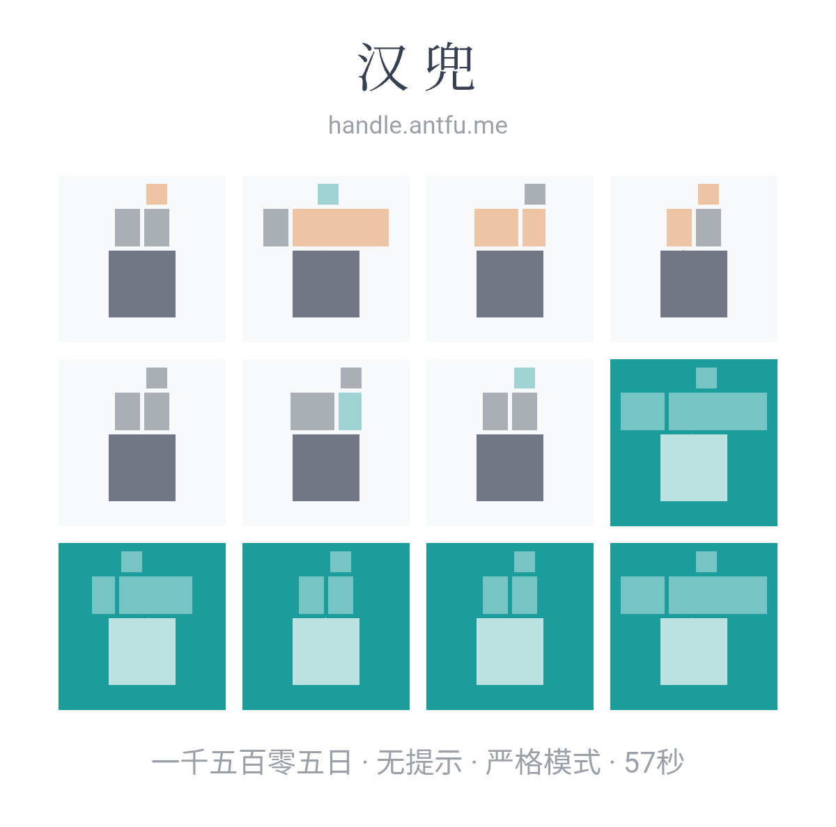 汉兜(https://handle.antfu.me/)是一个通过声母、韵母和声调猜成语的游戏。