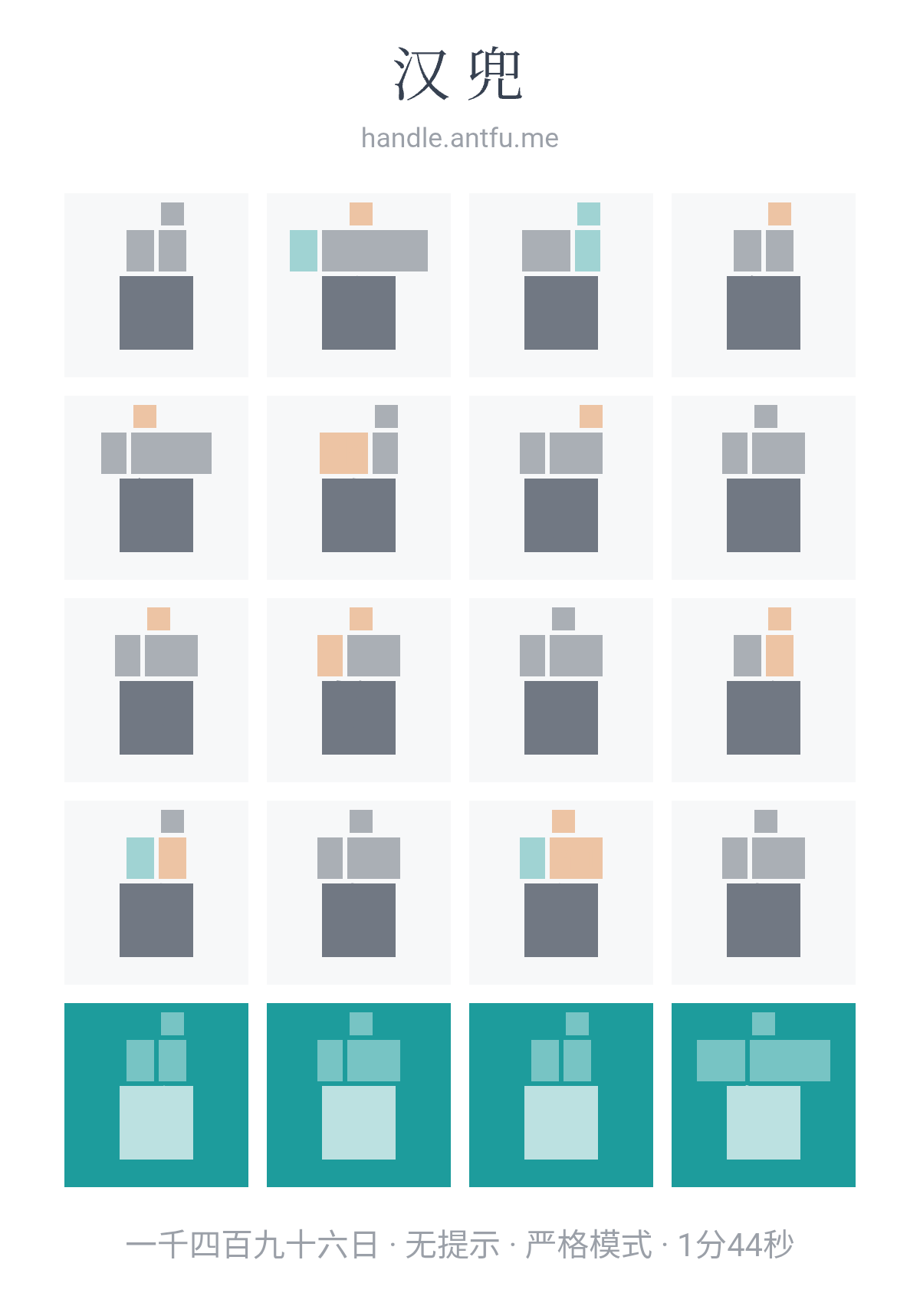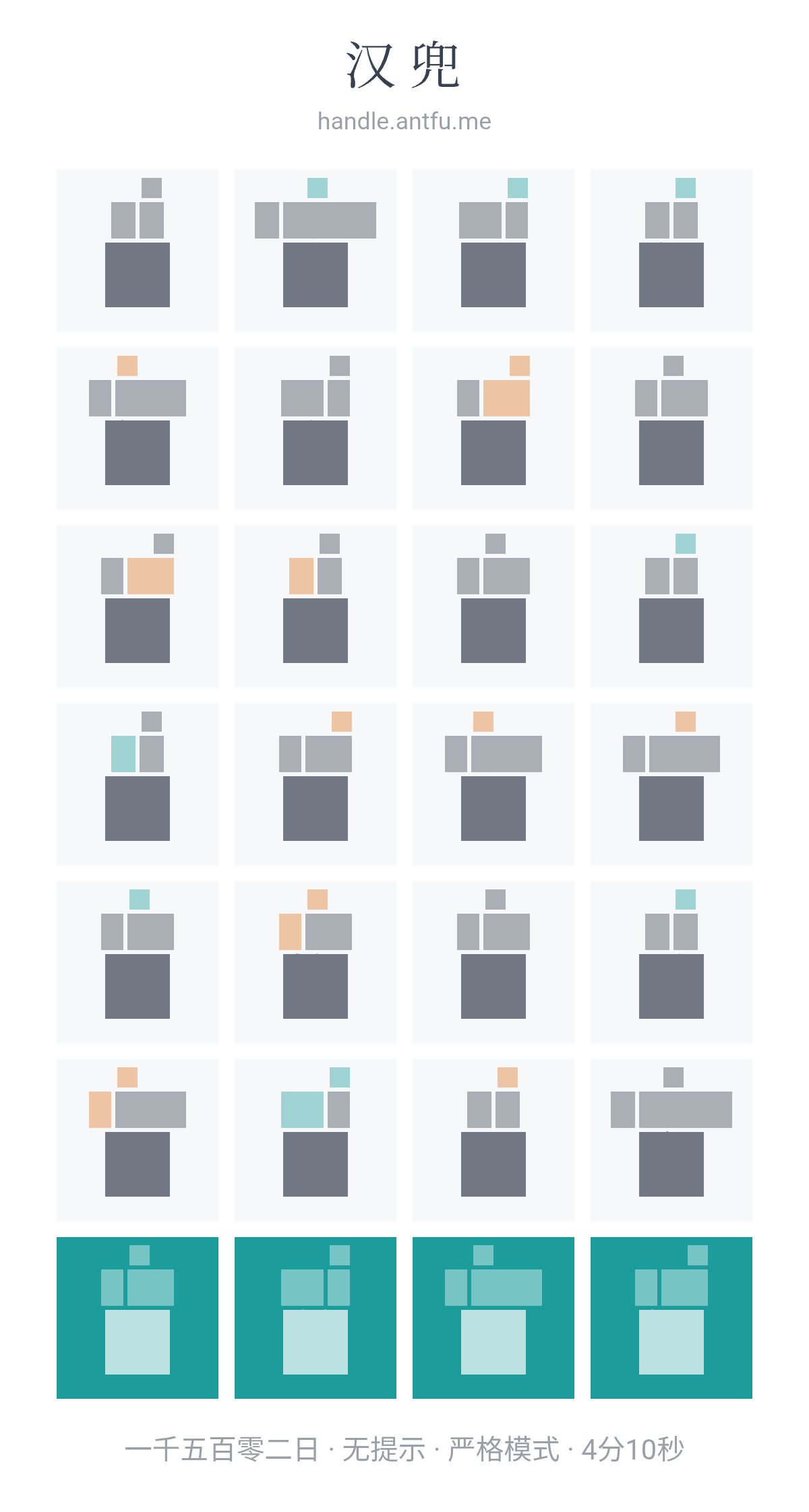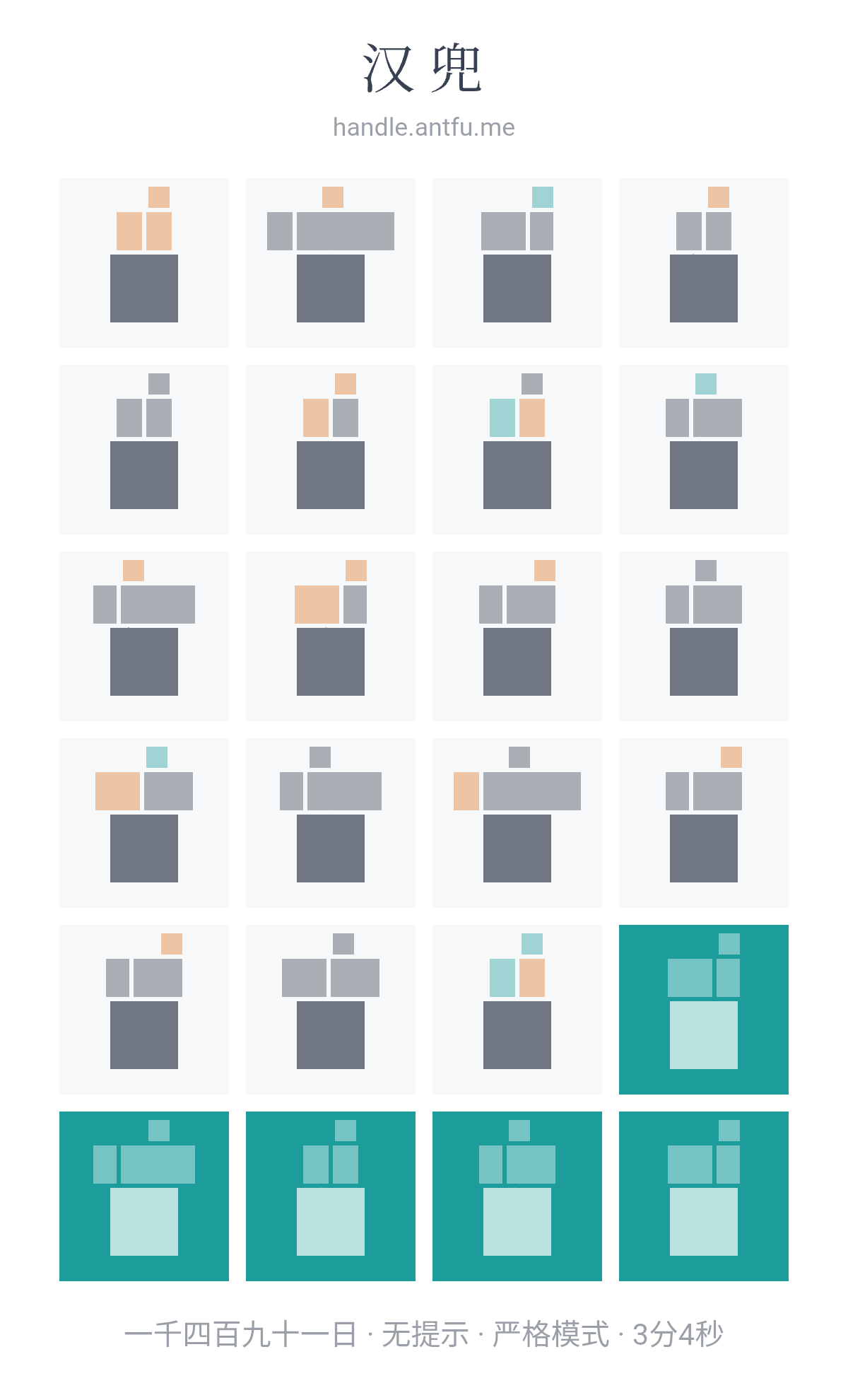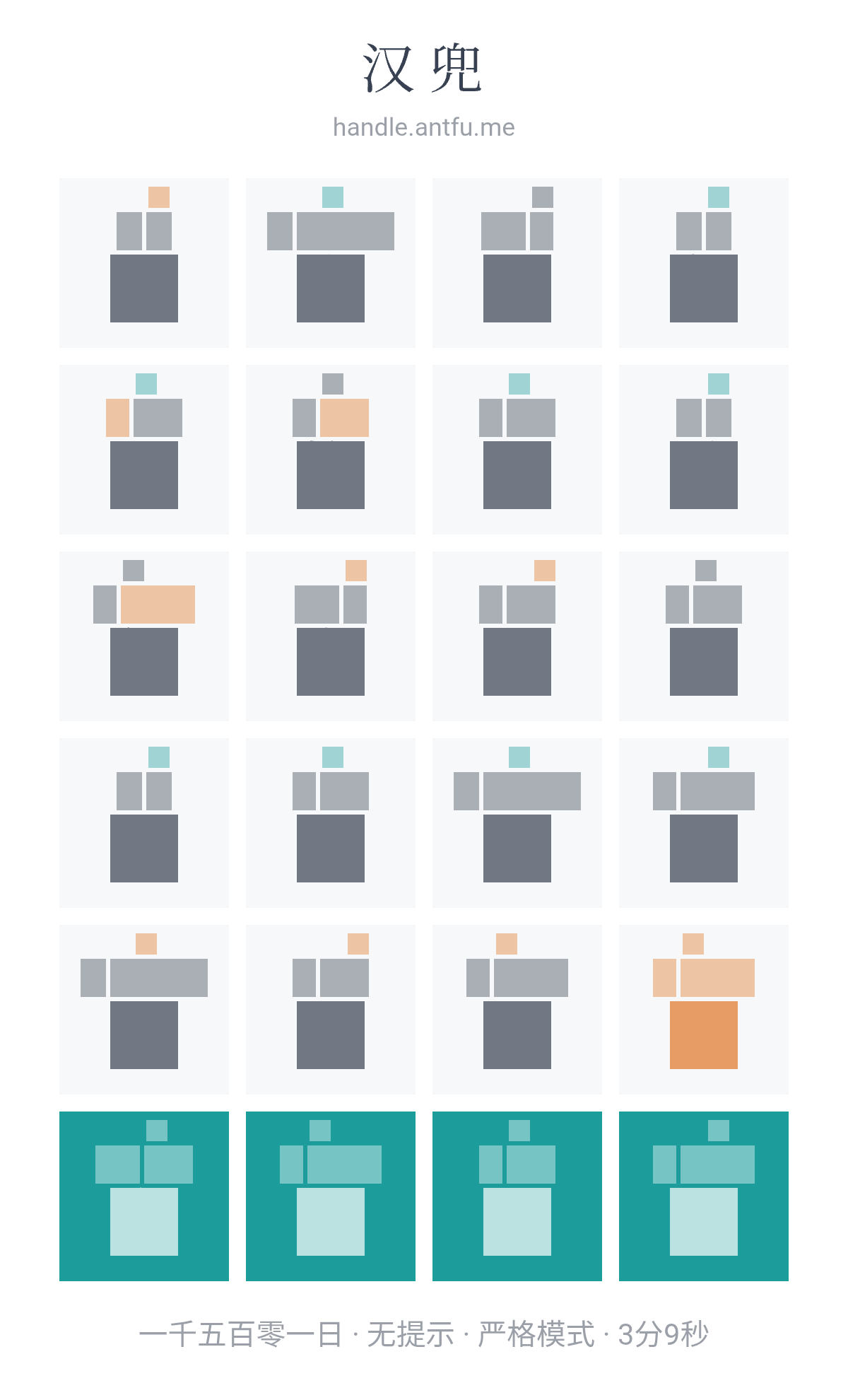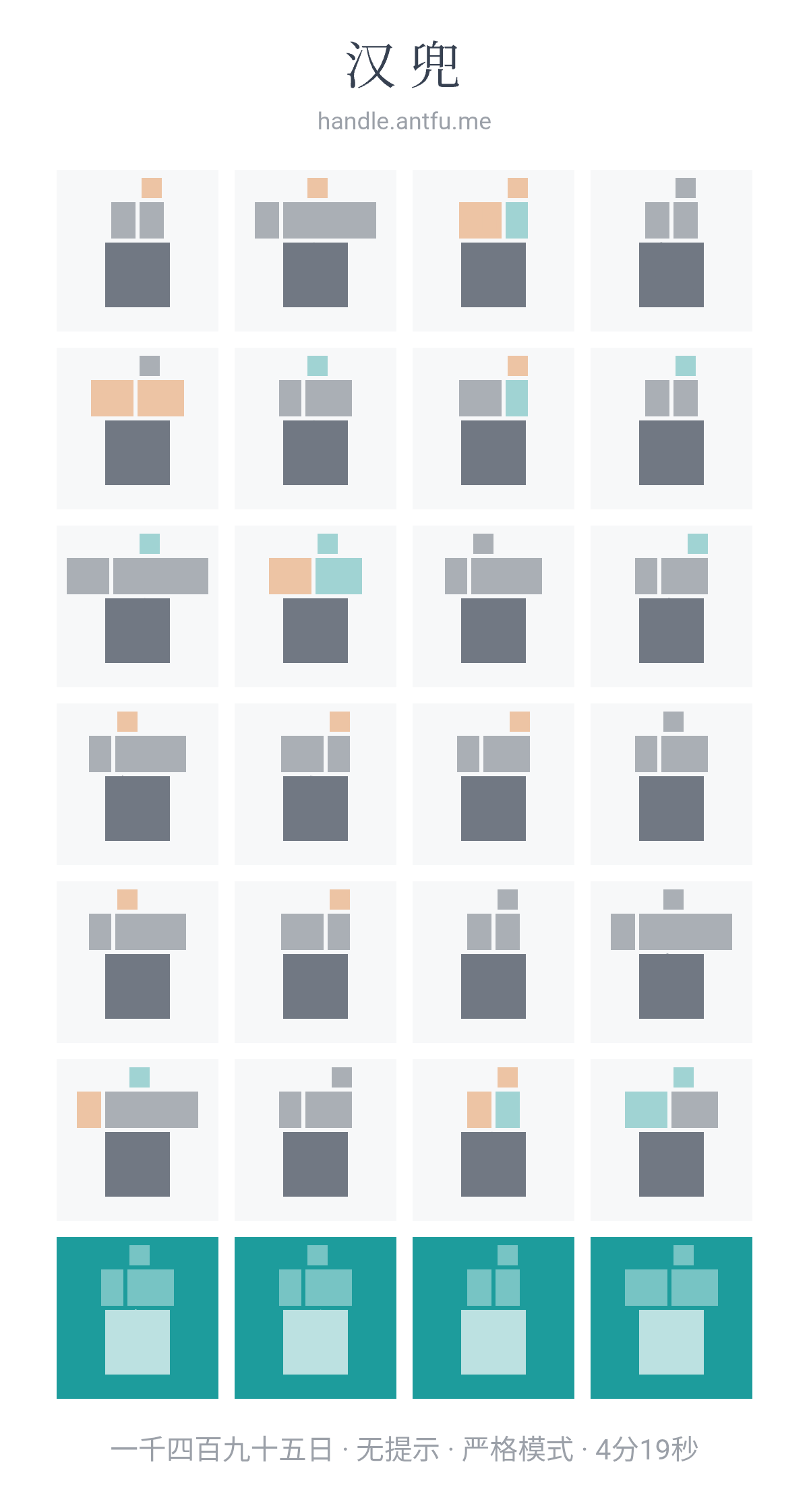 汉兜(https://handle.antfu.me/)是一个通过声母、韵母和声调猜成语的游戏。