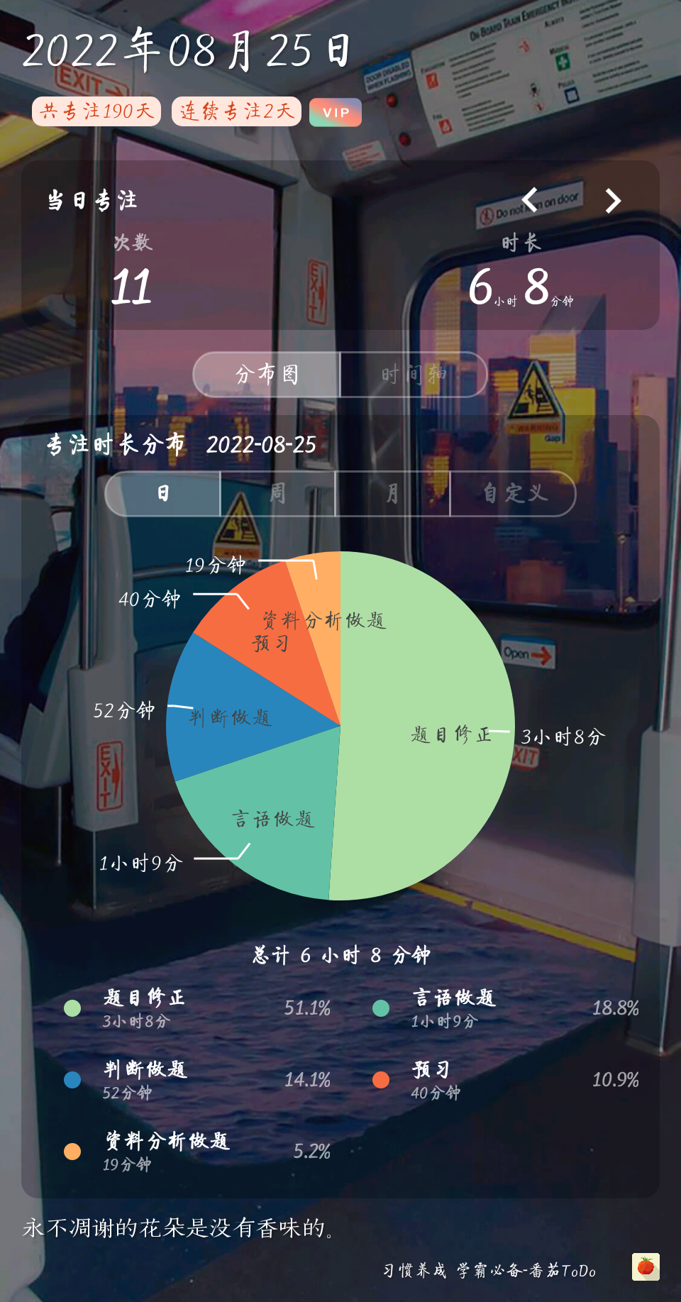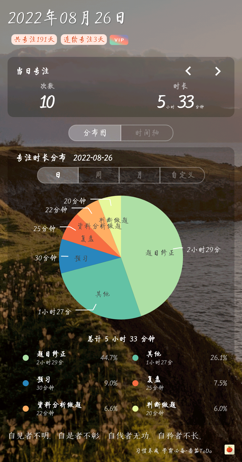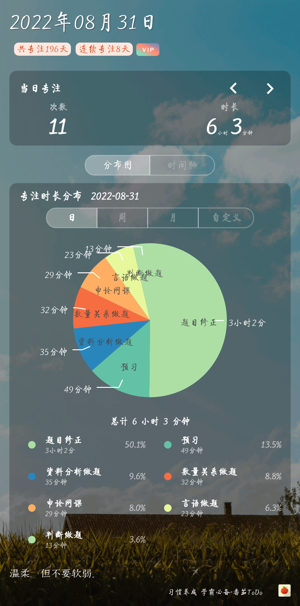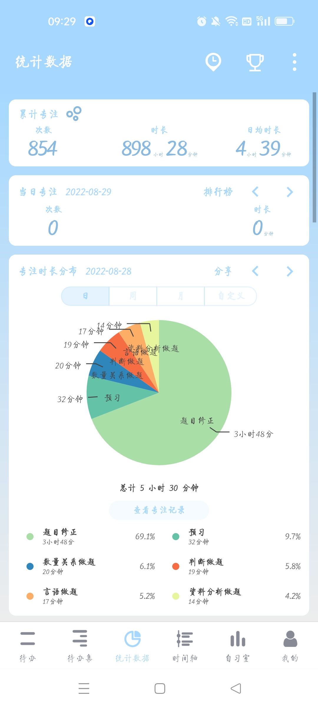 已经进入刷题阶段,申论也开始看网课了。希望以后能保持每天5小时有效学习吧。