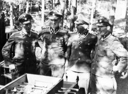 A group of SS men smile for a photo together in the recreational SS colony in Kleinobringen. The colony was not far from Buchenwald concentration camp, where over 56,000 people were killed. In front of them is a foosball table, Nazi Germany, 1940 750 x 554.