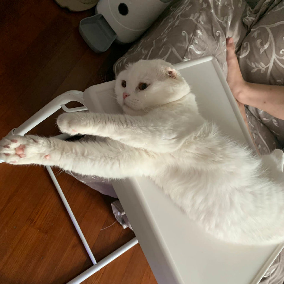 它看我拿手机拍它,就想凑过来贴贴,但是小肥我和它也不熟,怕它挠我,我就躲开了( ゚ 3゚)