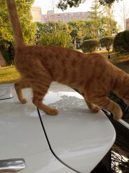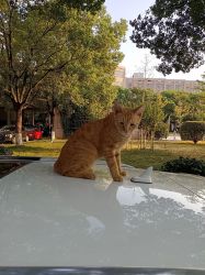 一直在叫,声音非常嘶哑,听到小姐姐喊它名字它就跑下车顶了(*゚ー゚)