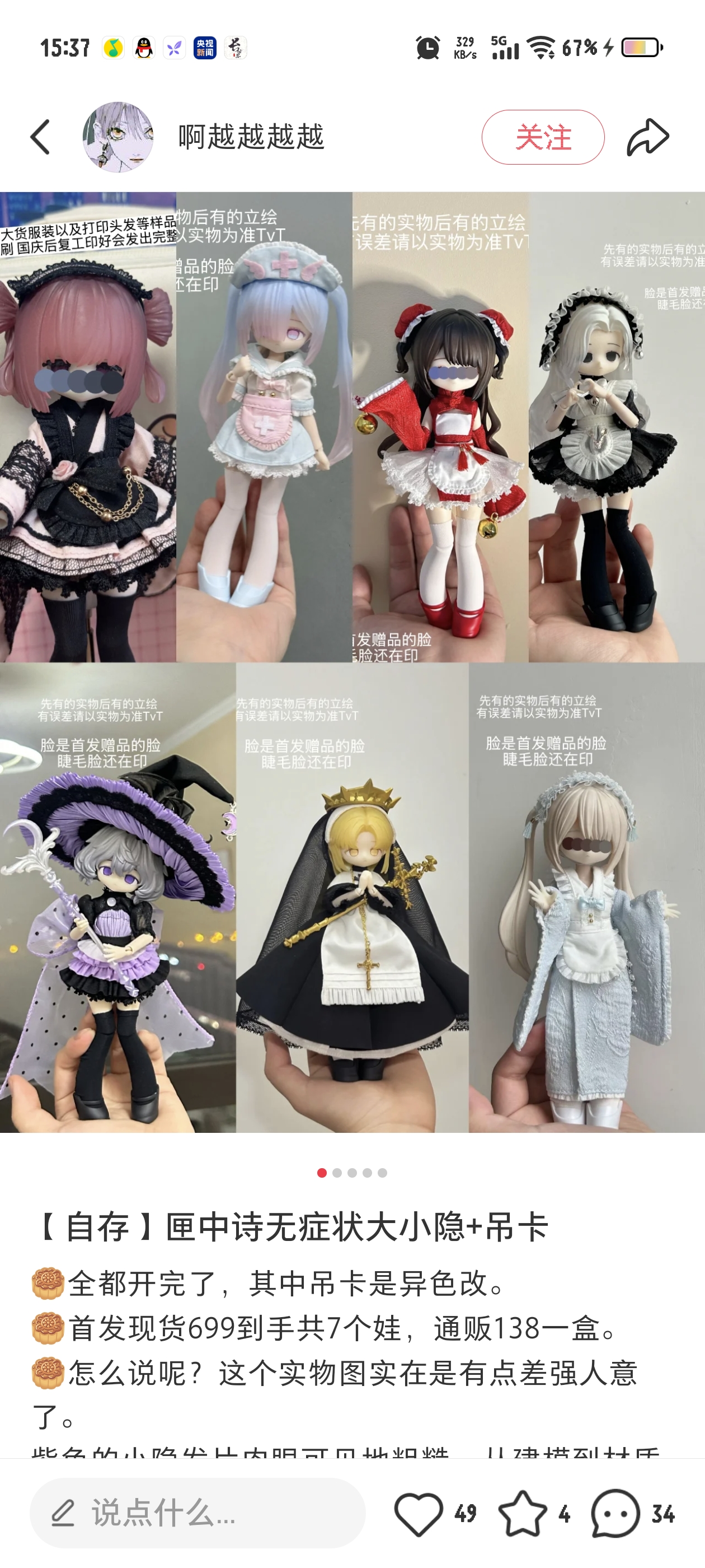 质量:没有问材质的习惯,到手是比较粗糙的材质,打头发没什么影响,脸壳私心想弄更细的材质( ゚∀。)不过实际使用应该没什么影响