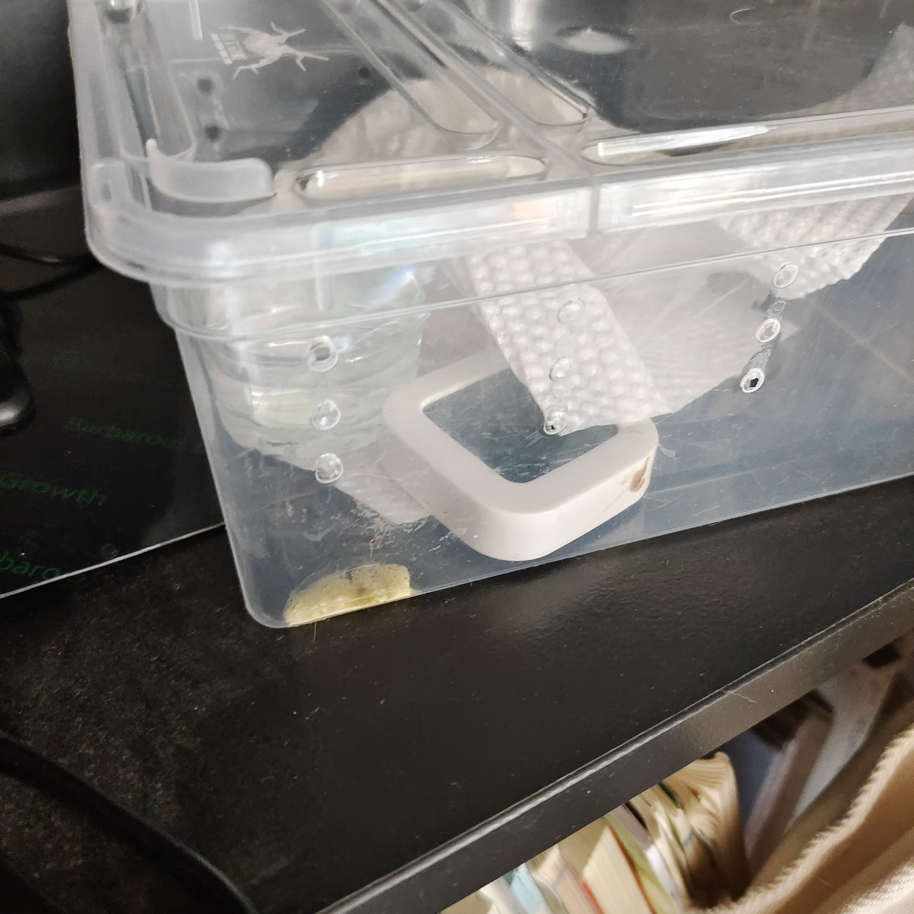 因为没躲避搞得垫材乱七八糟,屎也搞到箱子上了。待会儿准备抓着Suki让别人帮我清理一下箱子( ・_ゝ・)
