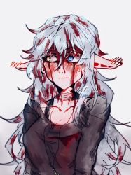 尽管你出于好面子在听到她声音的那一刻就赶紧试着收起自己失态的样子了,但你刚把自己的左手小指掰骨折没几小时,搞得你不太适应,没来得及抹掉不断从头顶流下来的血。