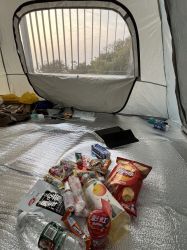 popo问了一下po姐,po姐带了点小零食可以先垫垫|∀` )popo想看看晚上会不会有多一点人搭帐篷!目前算上popo只有两顶帐篷