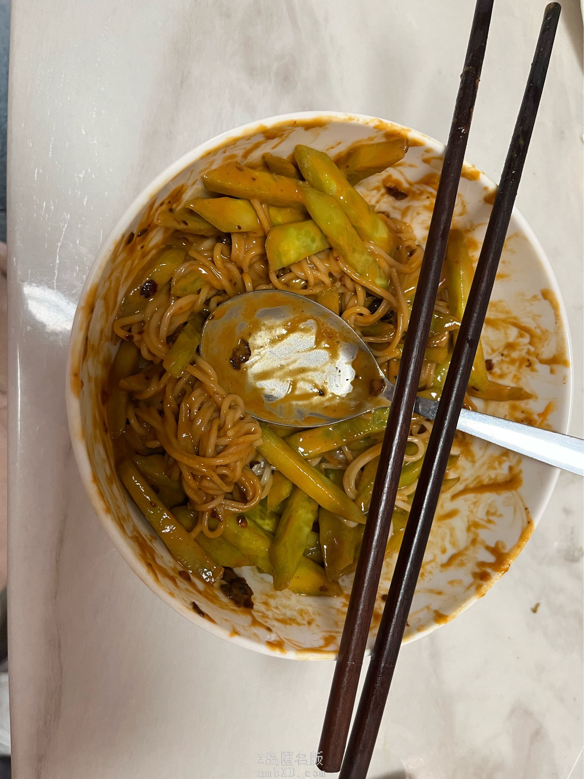 今天多下了一点面条,过了一遍凉水( ´∀`)要比昨天的好拌很多