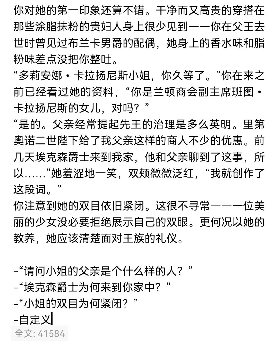 “嗯……如果陛下是问我的话……其实我有很多话想说。”她有些苦恼地低下头,“不知道陛下的时间是否足够……”