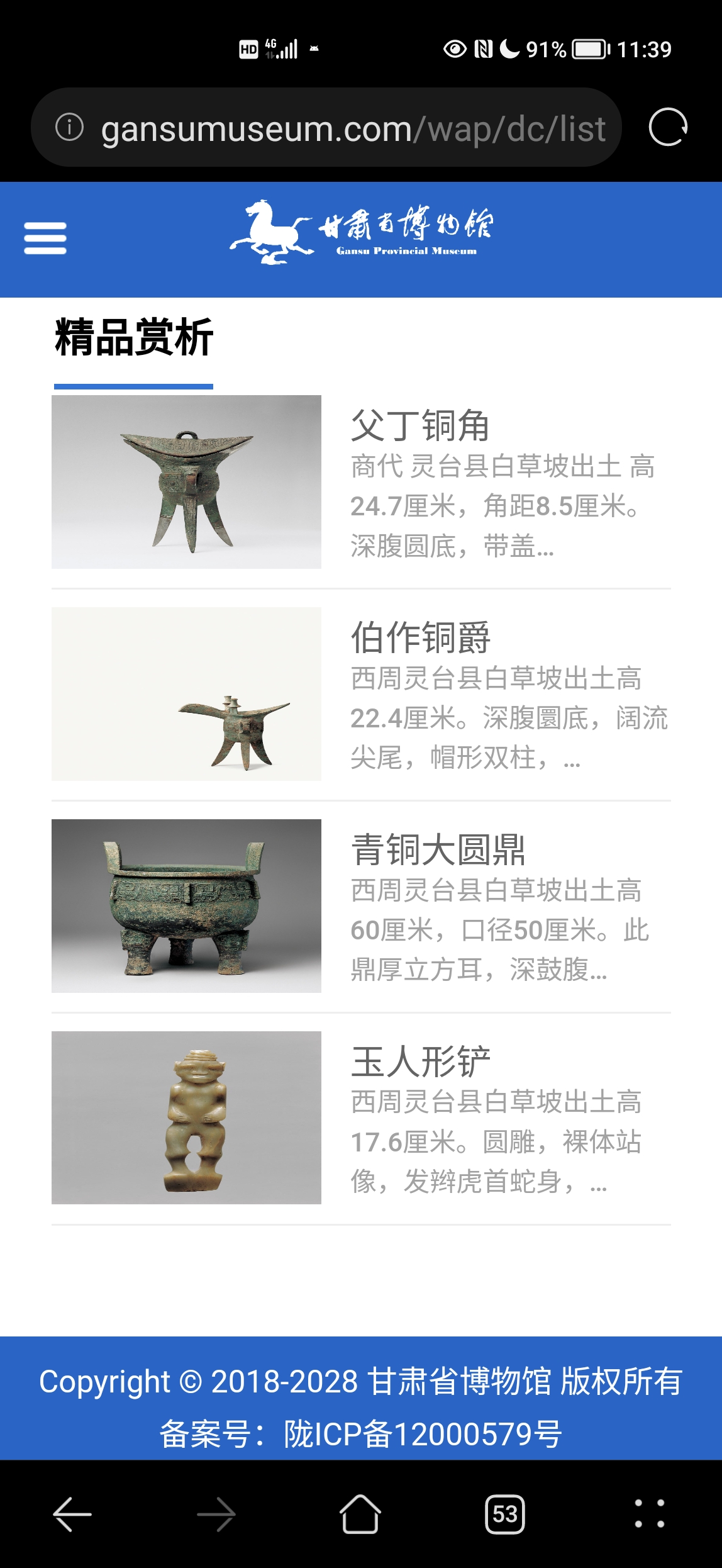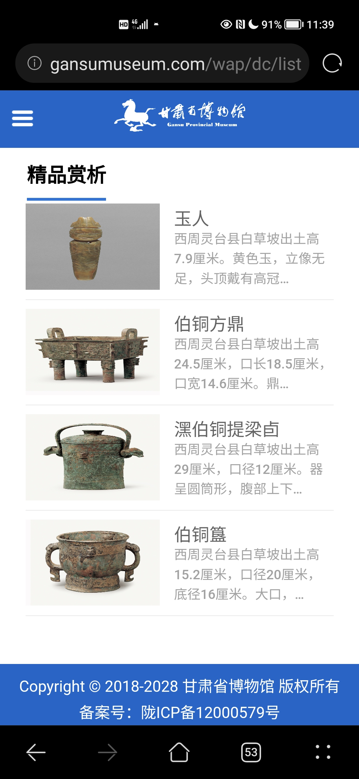 没有| ω・´)只是上了甘肃省博物馆的官网看看(=゚ω゚)=