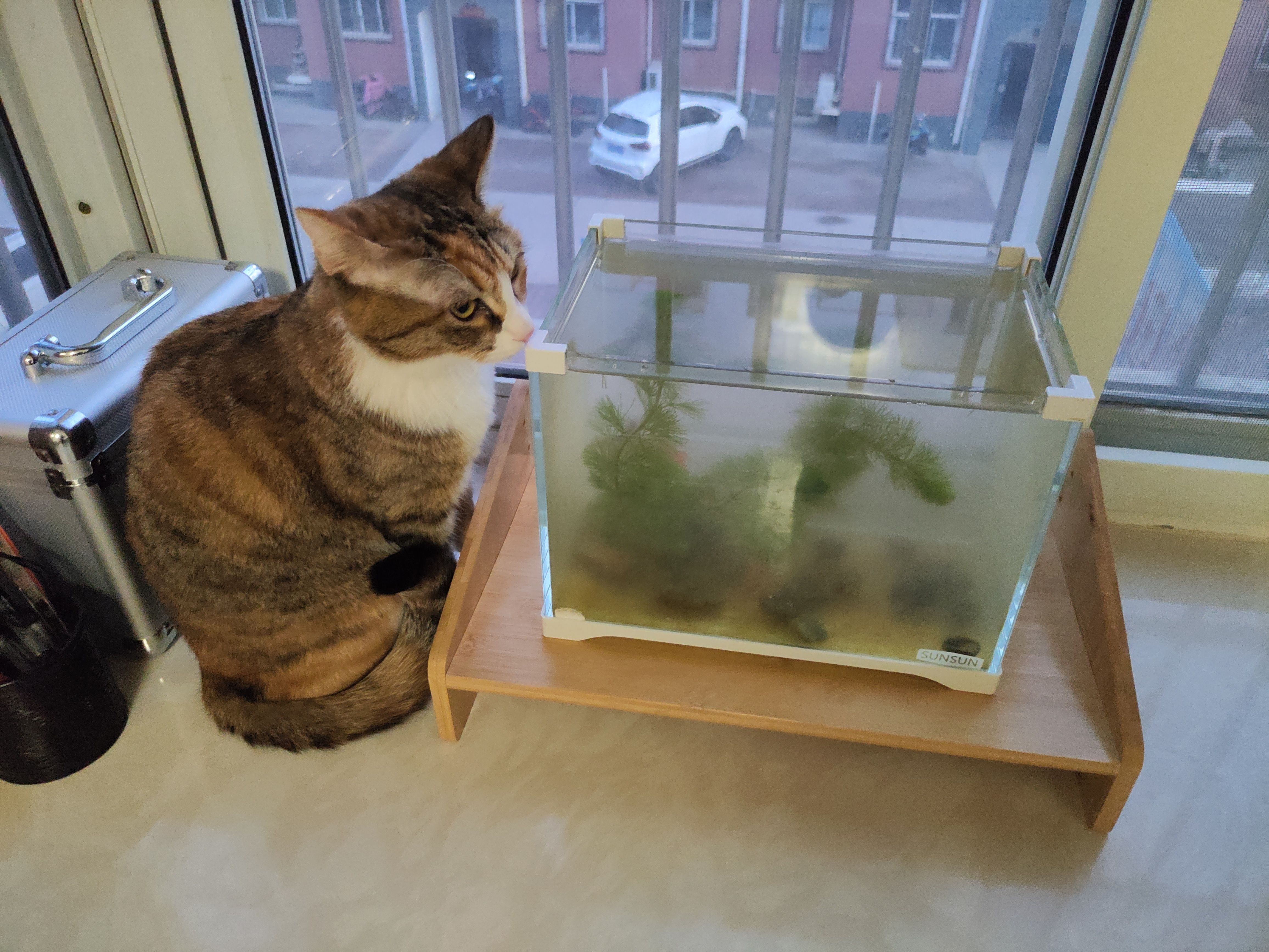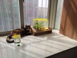数不清day几,反正报告一下,鱼还活着,看上去没什么异常。左右护法对鱼缸的兴趣明显下降了,不再围着它转