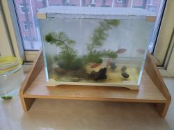 顶上是水果网兜,因为有鱼跳缸所以就临时加上了,过几天买了盖子来就……好看点了