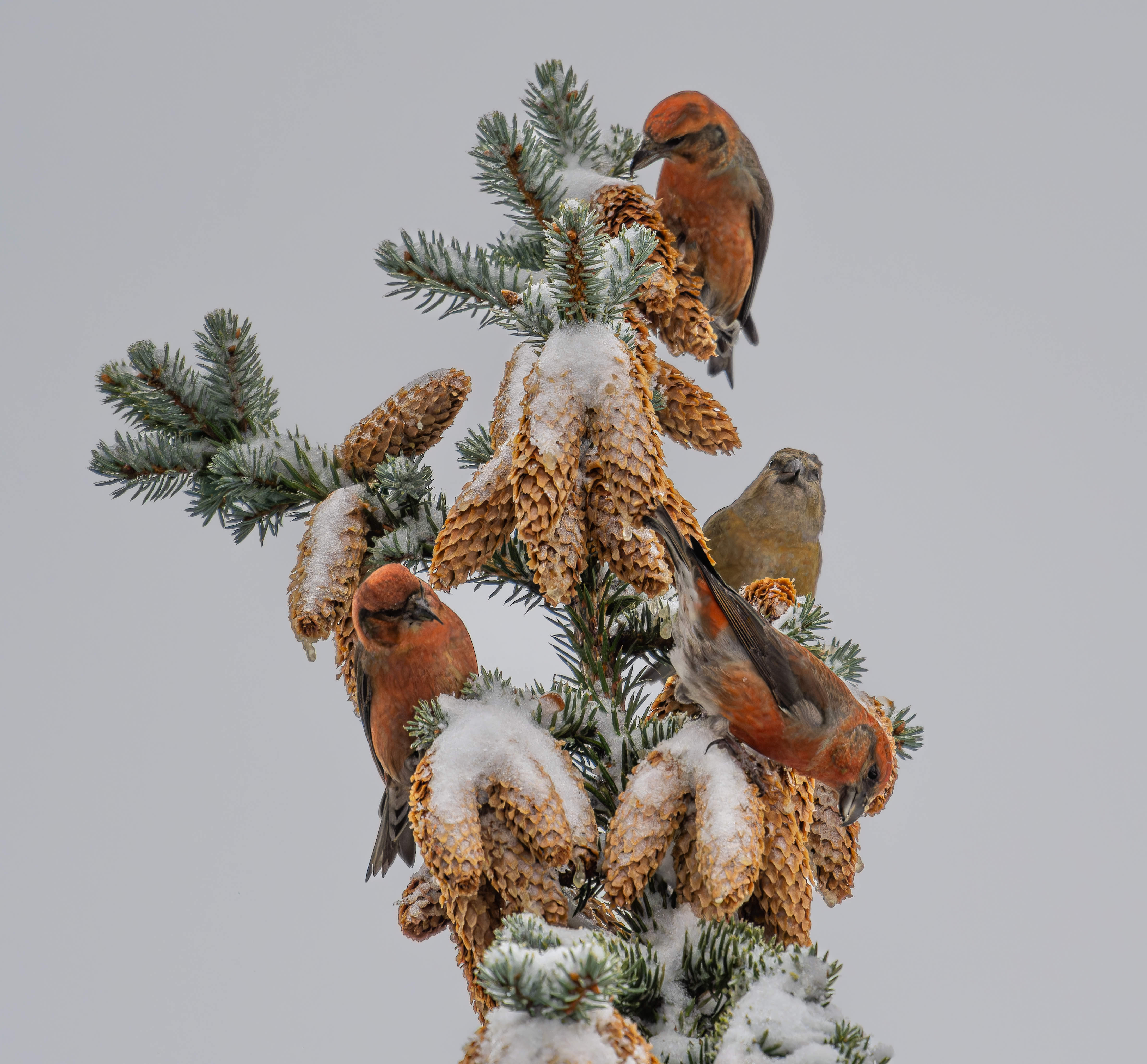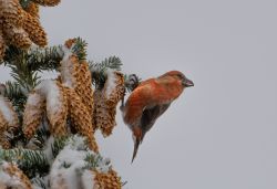 松树上的红交嘴雀(ゝ∀・)
