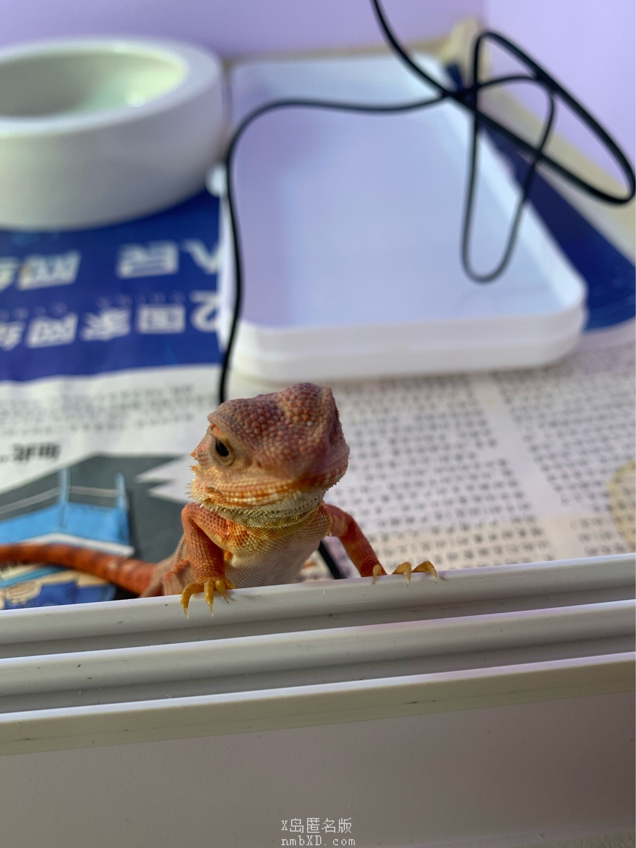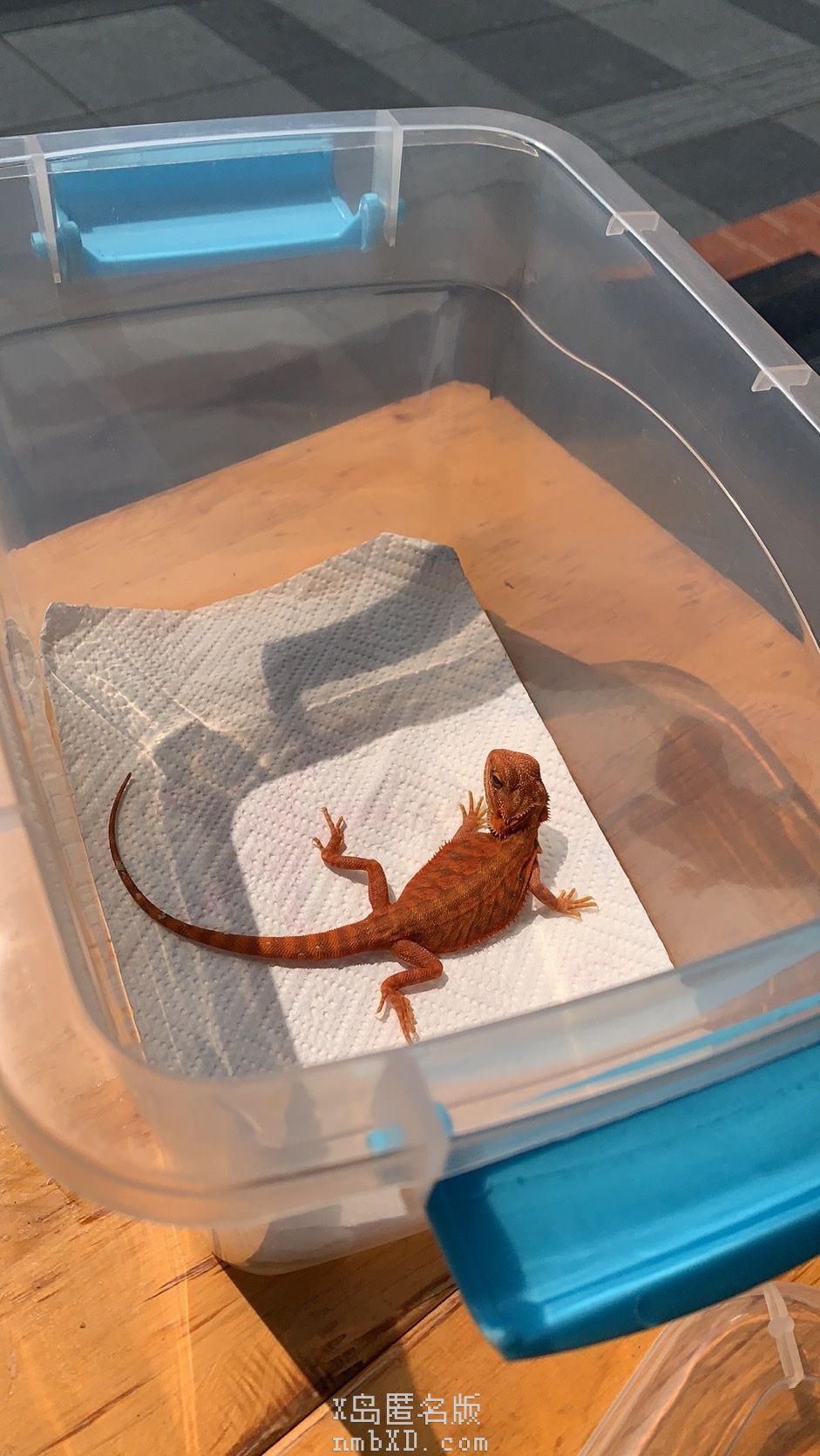在改造完pvc箱子的电路之后,搞了一个智能插座,每天按时开关灯,非常方便,强烈建议,除了喂食和换垫材,其他时候都不用管。然后亮红色鬃狮蜥梭一顶着疫情到了家里。刚来的时候超小只,而且还在蒙皮,比袜袜还要轻很多