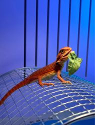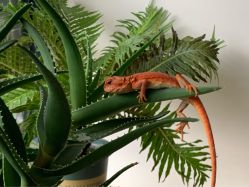 鬃狮蜥来的前几天不太吃东西,只吃香蕉,后面才开始正常吃食。放在芦荟上拍艺术照,然后把我的乒乓菊叶子吃掉了一块( `д´)