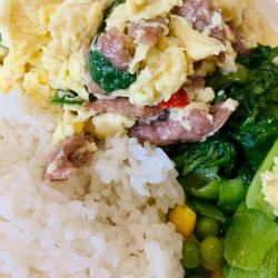 晚餐(*゚∇゚)脆皮五花肉拌饭香香!好吃!拌饭酱估计是加了蜂蜜,凑近闻有很浓的蜂蜜味道~但不是很甜!这几天吃过的最好的一餐!
