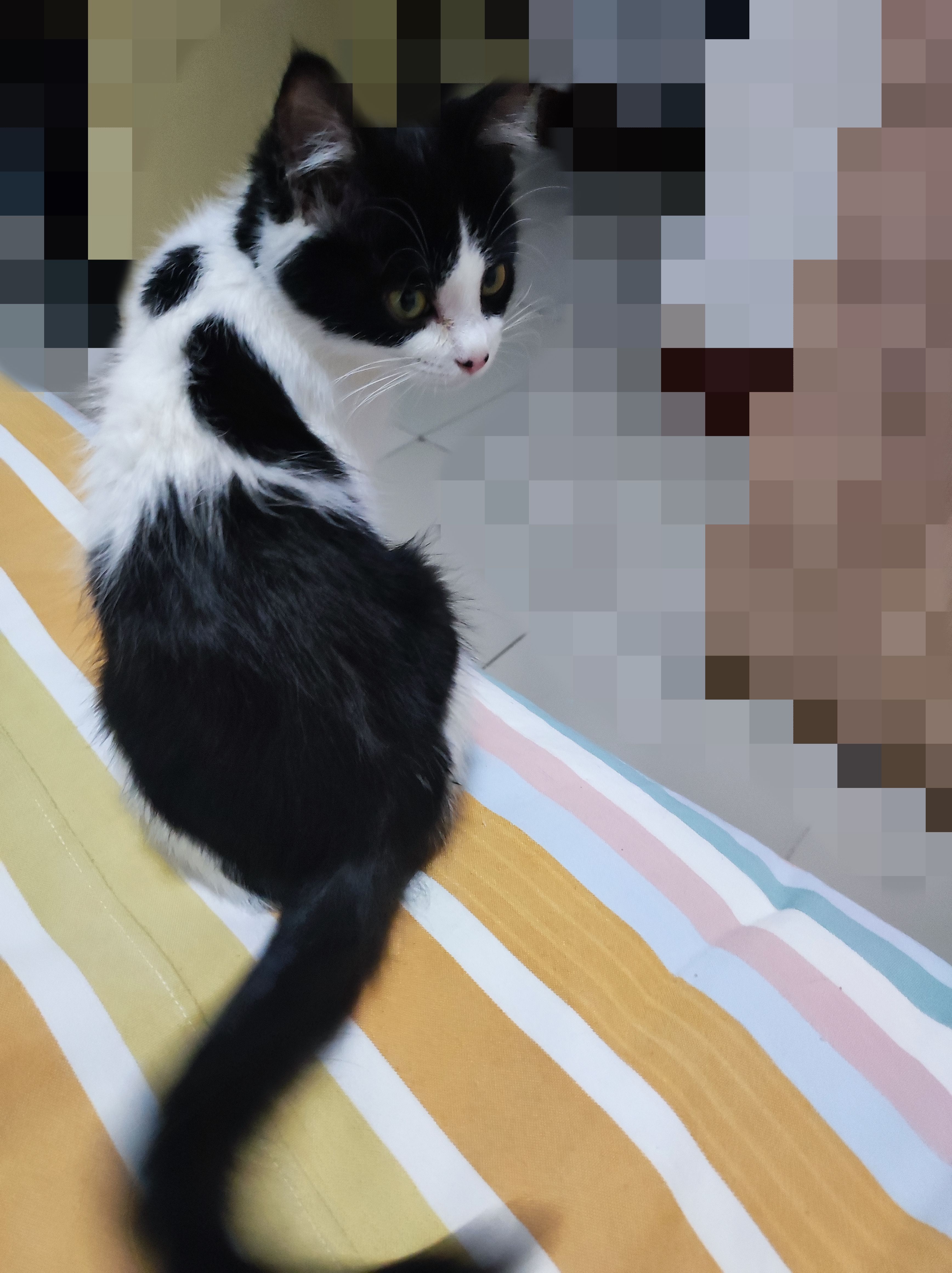 抱回来一只流浪长毛小奶牛猫。
