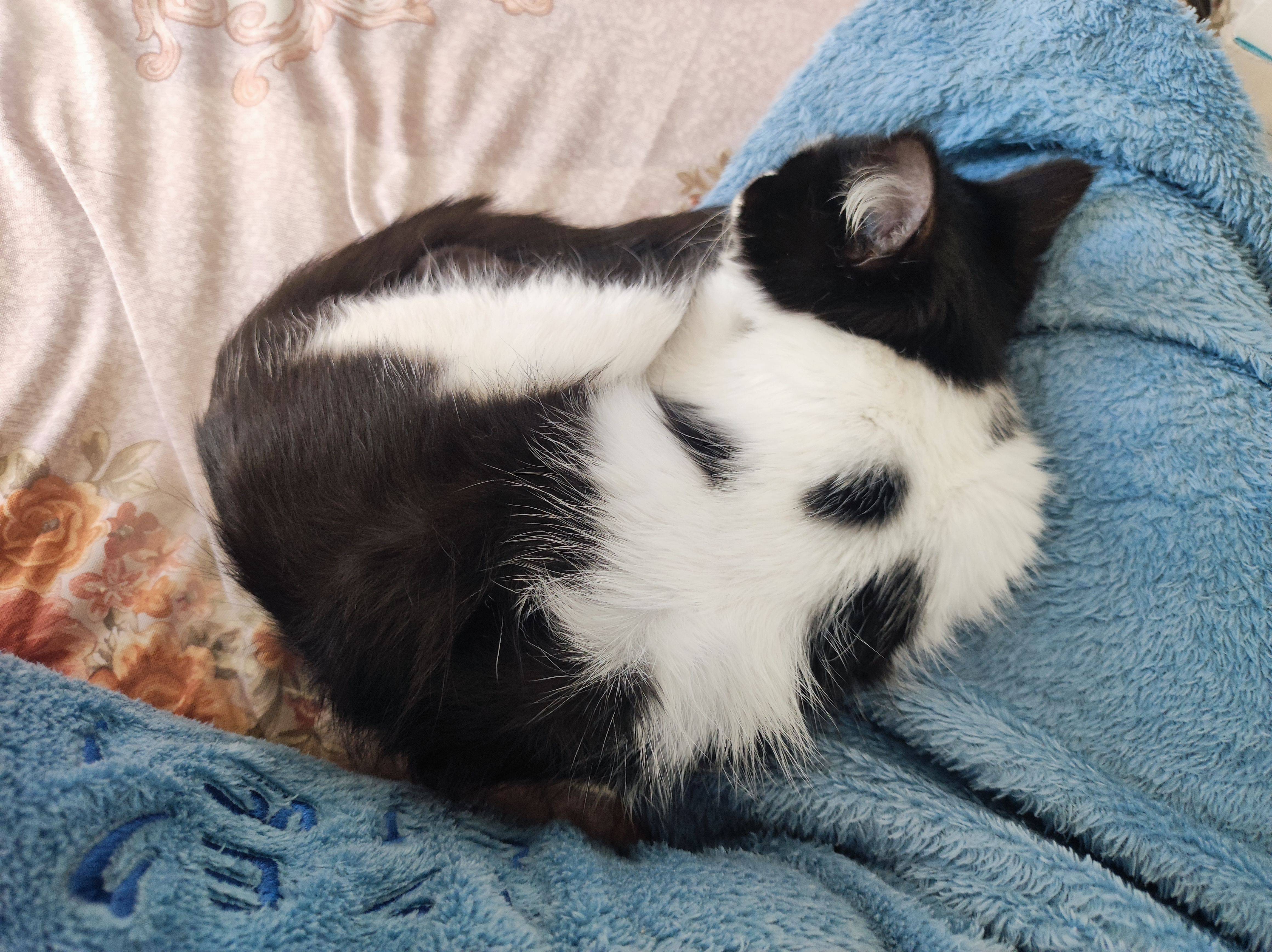 奶油其实挺喜欢睡我身上,但我睡眠实在很不好,一般都会把他放我枕头边或者怀里。