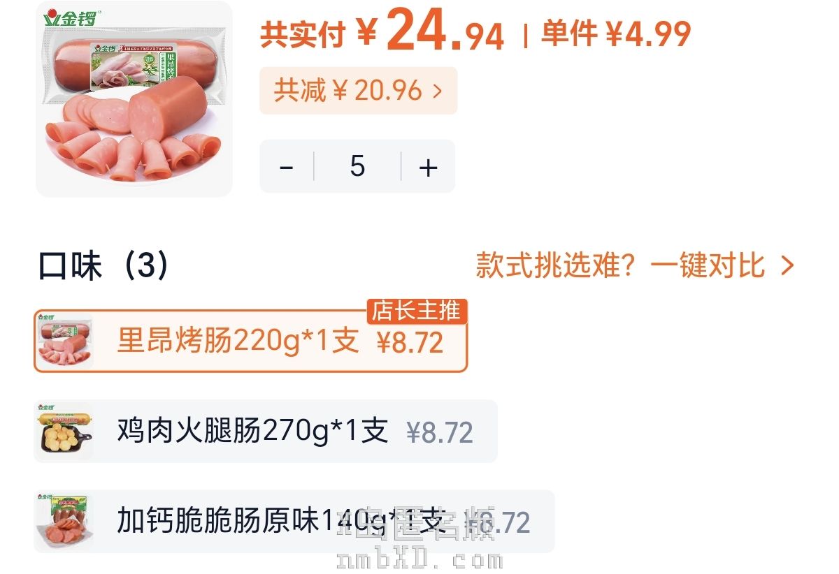 金锣里昂烤肠220g*5