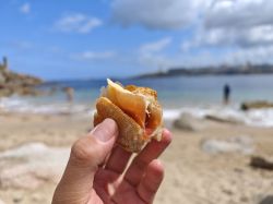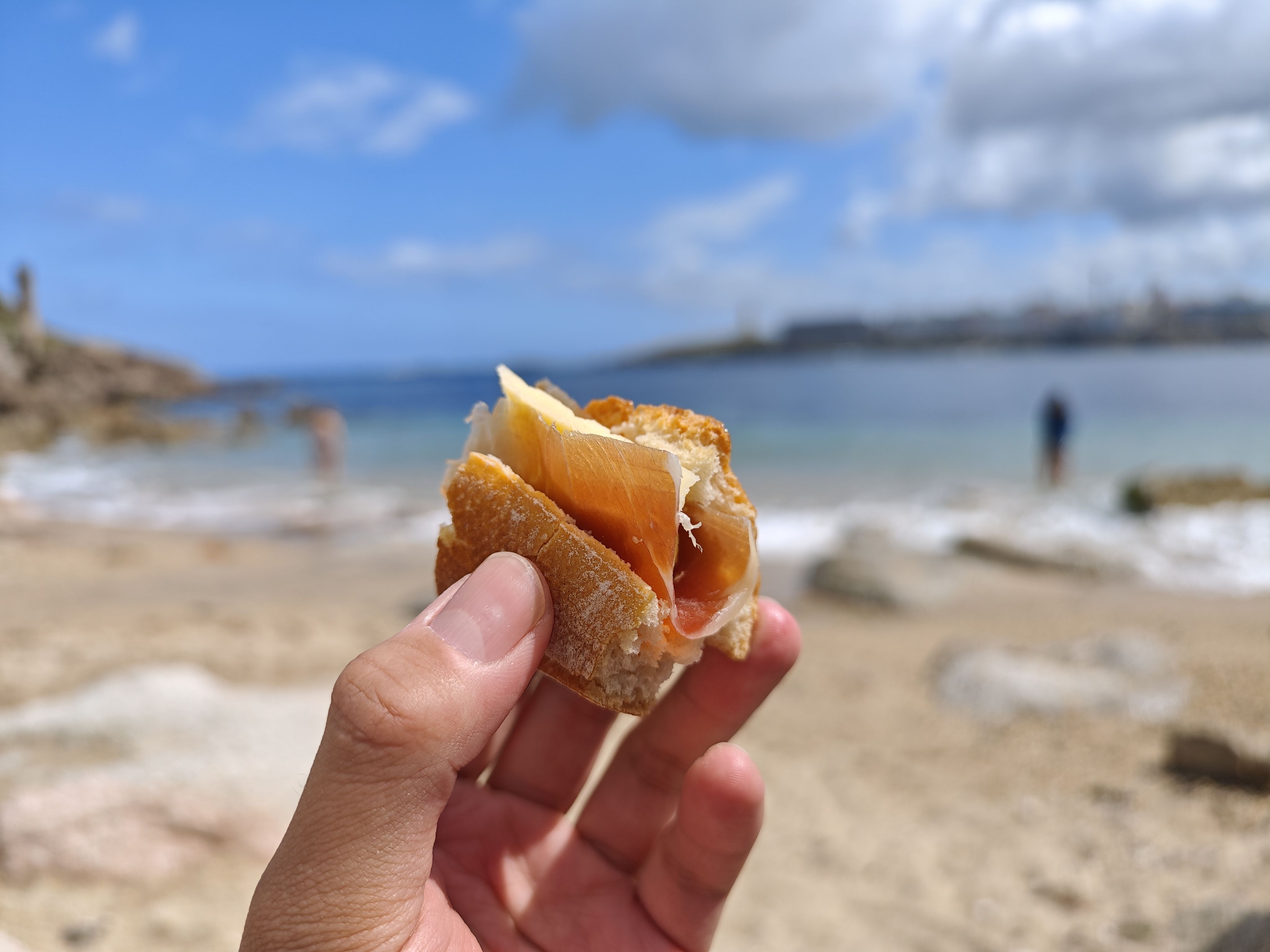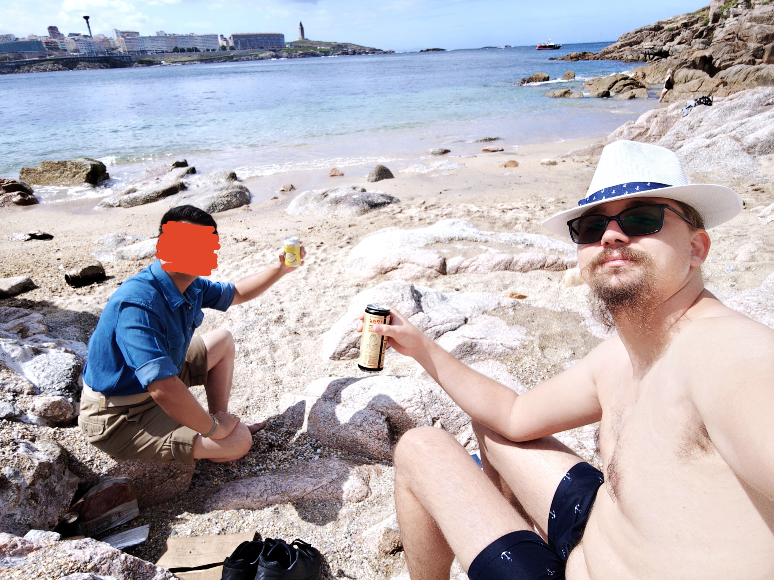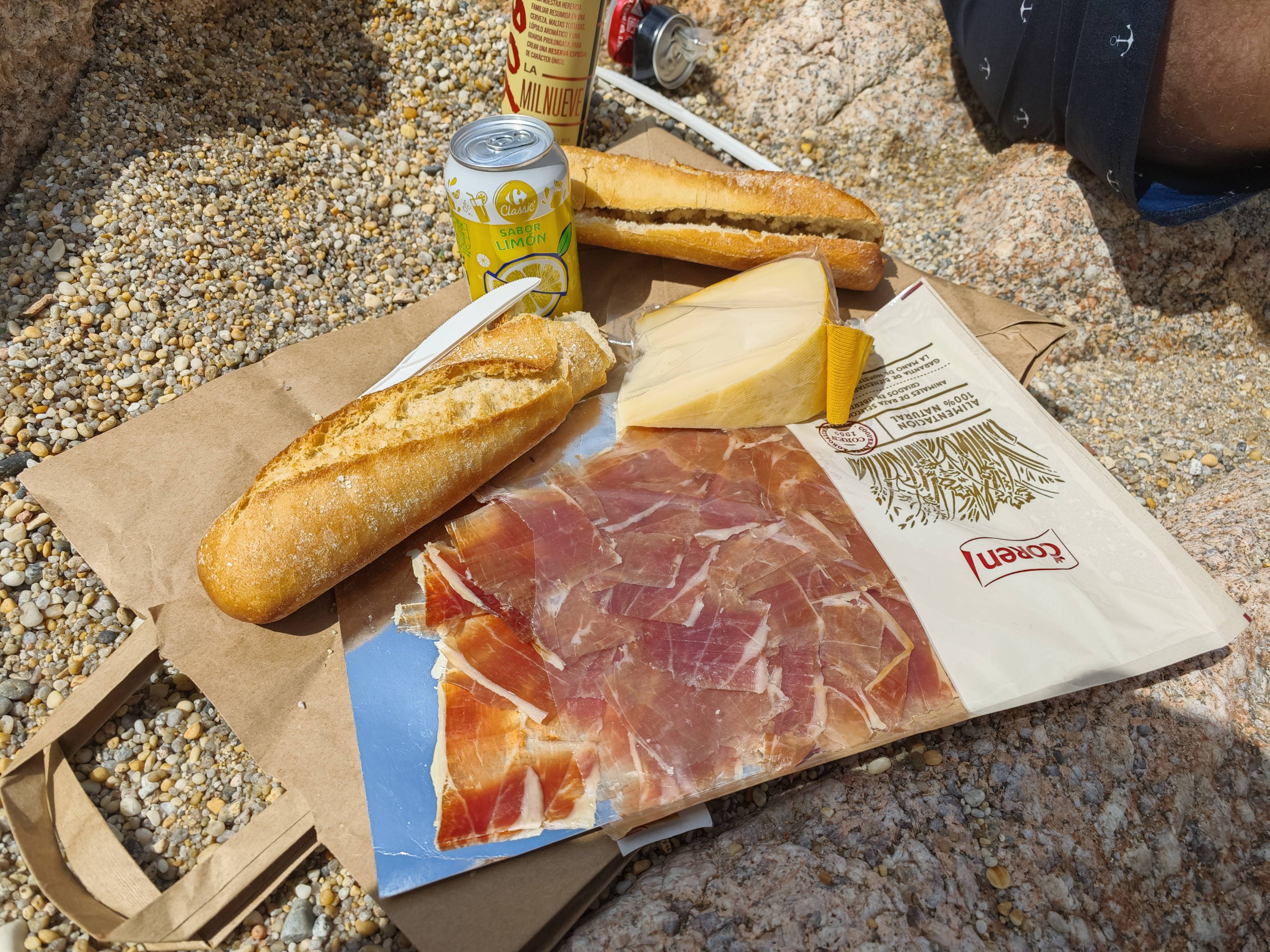 然后带去了海滩!火腿+面包+芝士+啤酒+薯片一共20欧 |∀` )