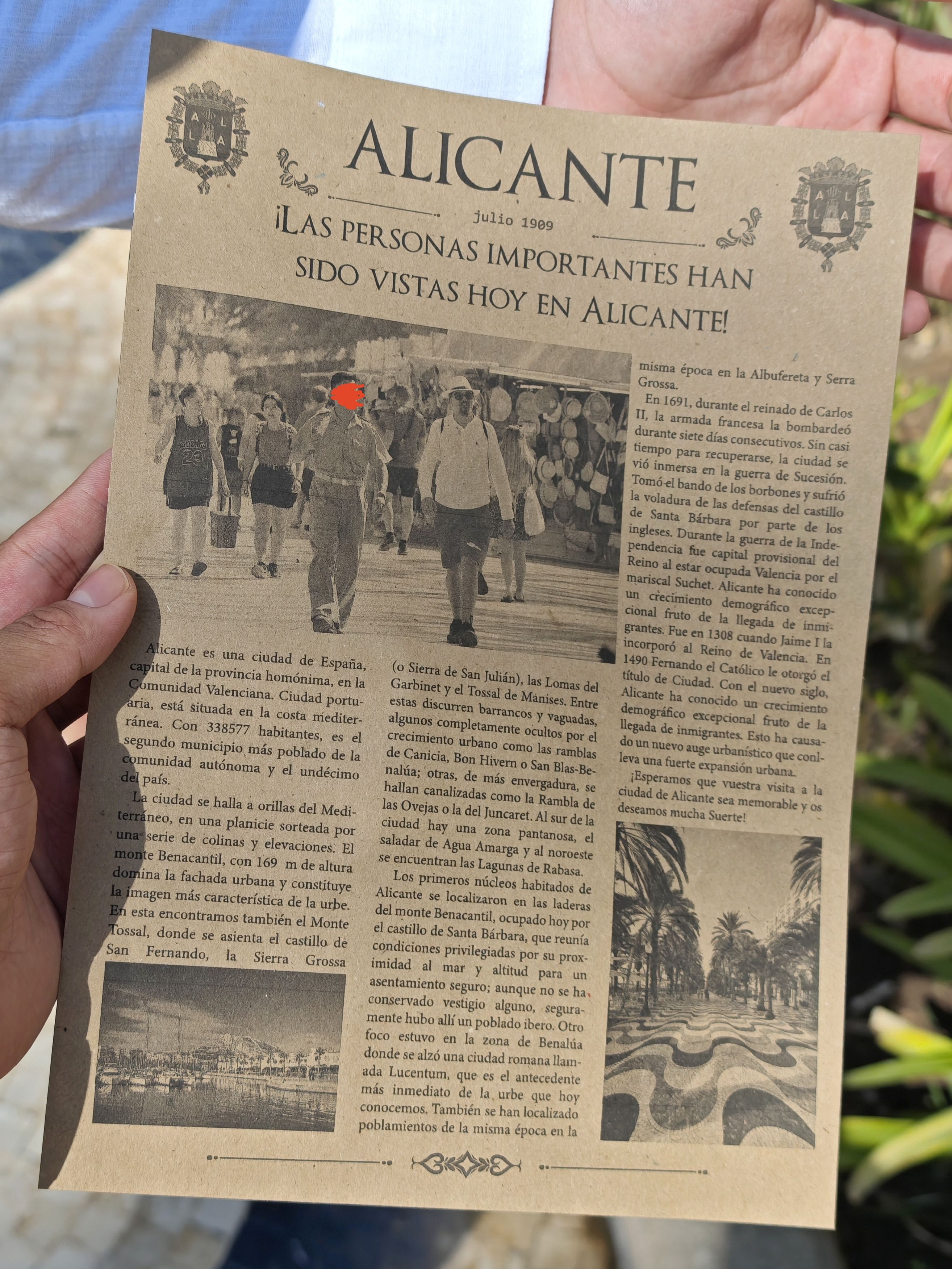 (*゚∀゚*) 西班牙街上有各种各样的卖艺者,吹拉弹唱之外,还有扮雕塑的,变魔术或者表演杂技的,今天在阿利坎特街头被一个姐姐塞了张纸,一开始还以为是传单,仔细一看,对方是用拍立得给路人拍照然后印在这种复古纸上,拍立得和打印机还特别包装成了老式相机的样子 还挺有创意的hhh