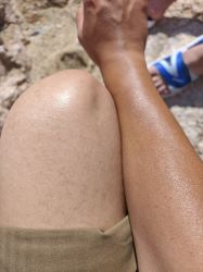 ( ´ー`) 因为一直穿长裤所以腿没被太阳晒过,但是和手臂一比............