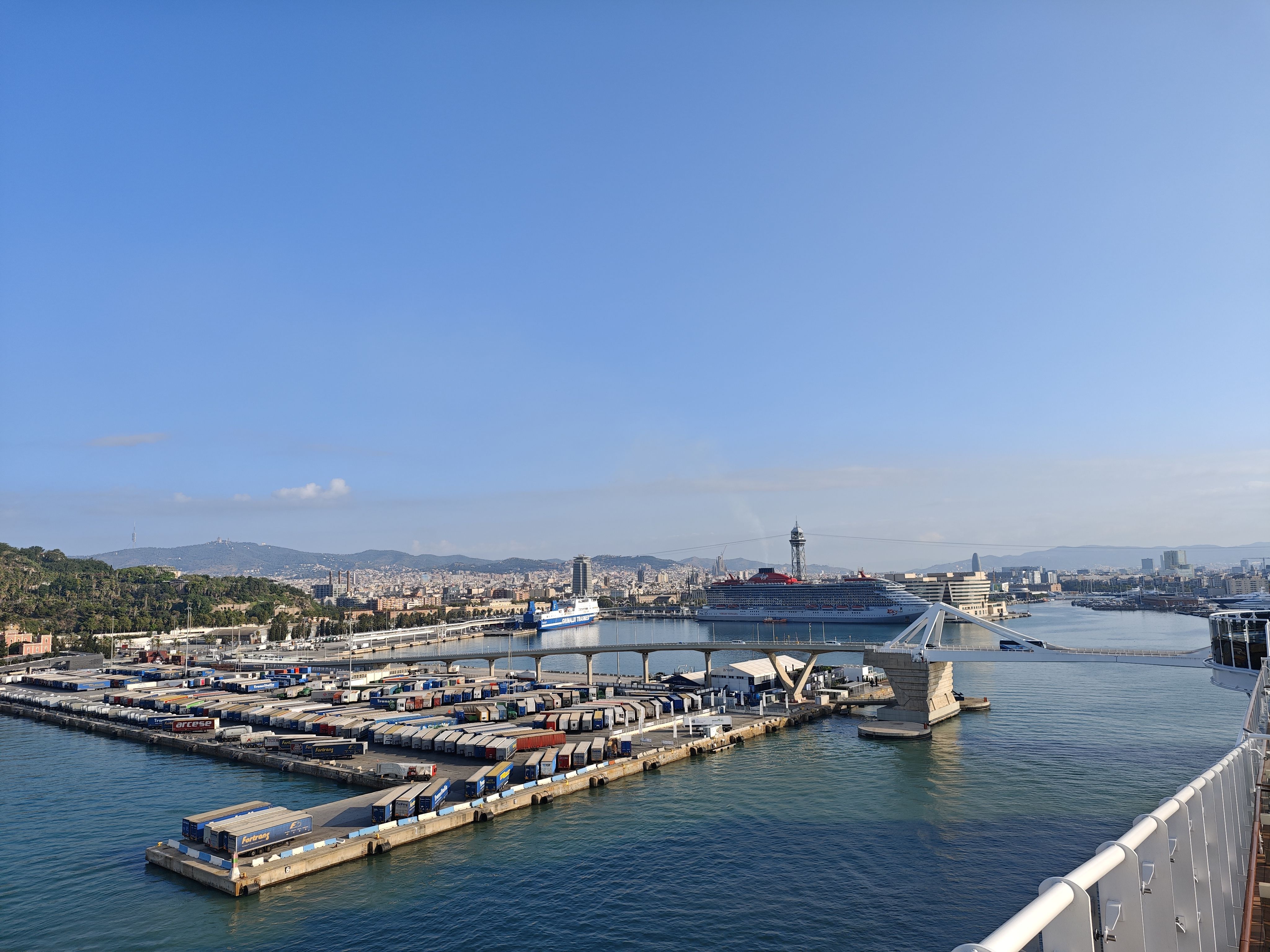 今天一共有5艘邮轮停靠,除了我们之外还有歌诗达的翡翠海岸,皇家加勒比的海洋绿洲,马雷拉的航行者,还有维珍邮轮的Scarlet Lady(暂无中文官方译名)