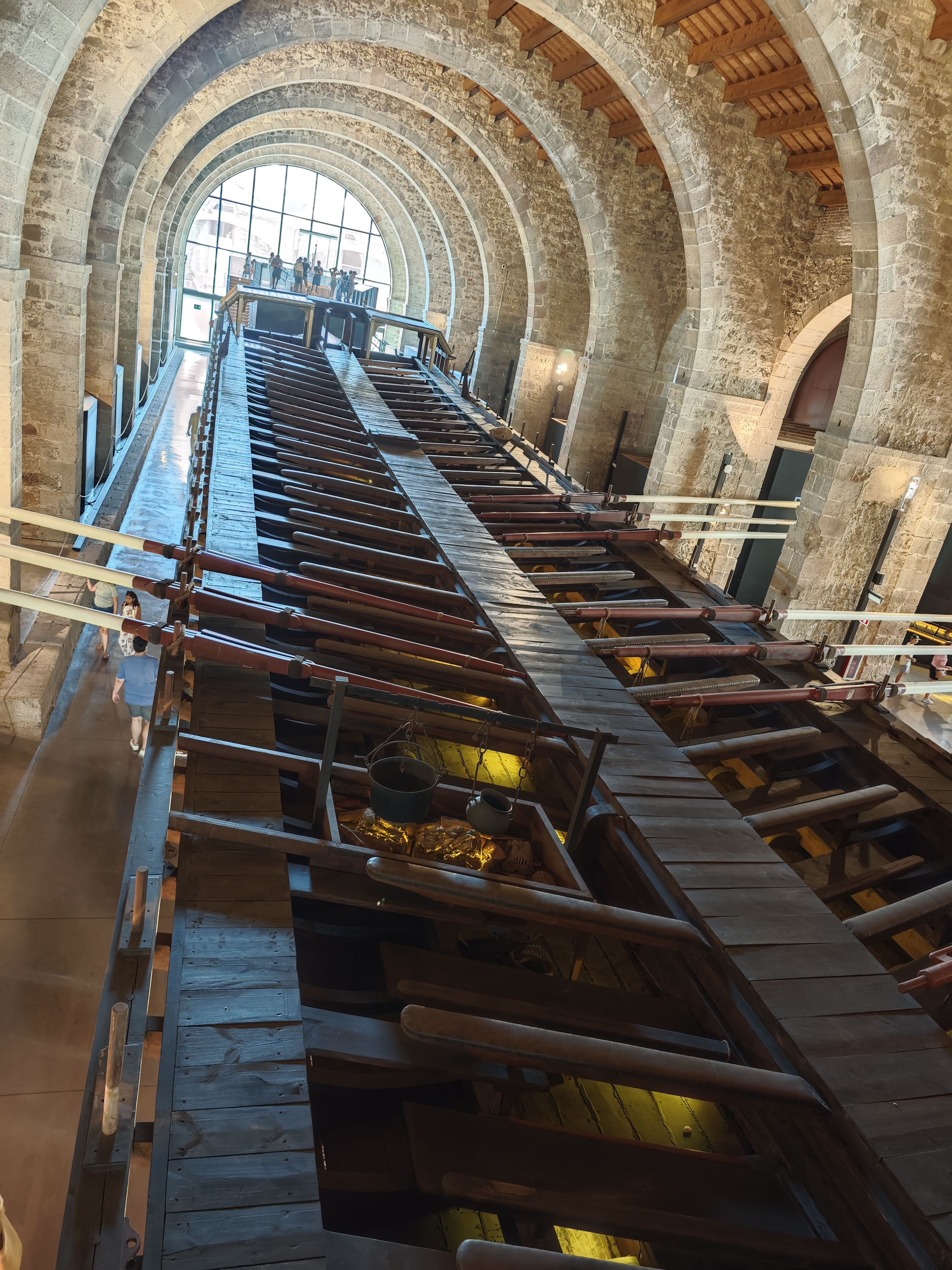 中间是划桨手的位置,4个人摇一根船桨,这里一共有200人