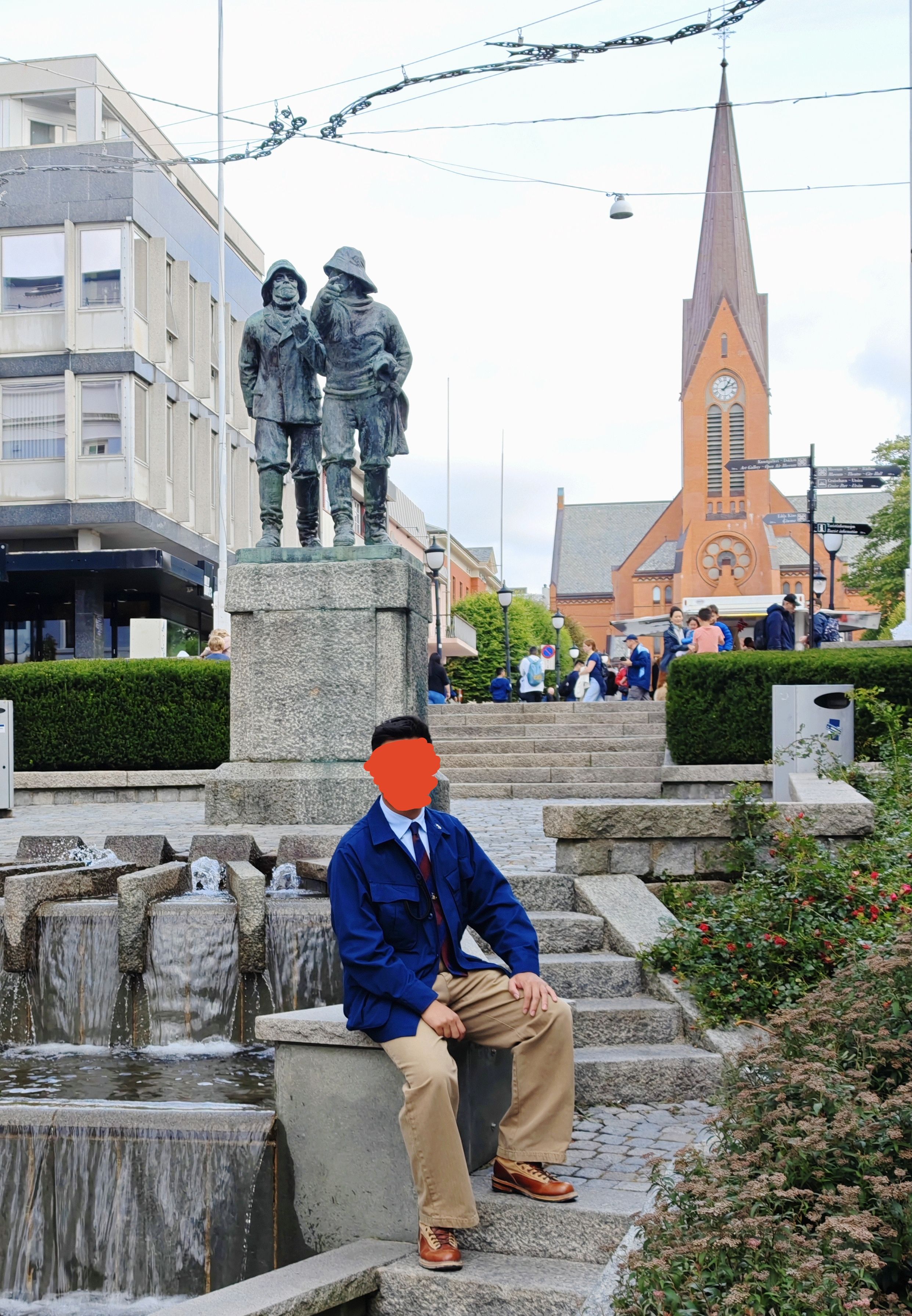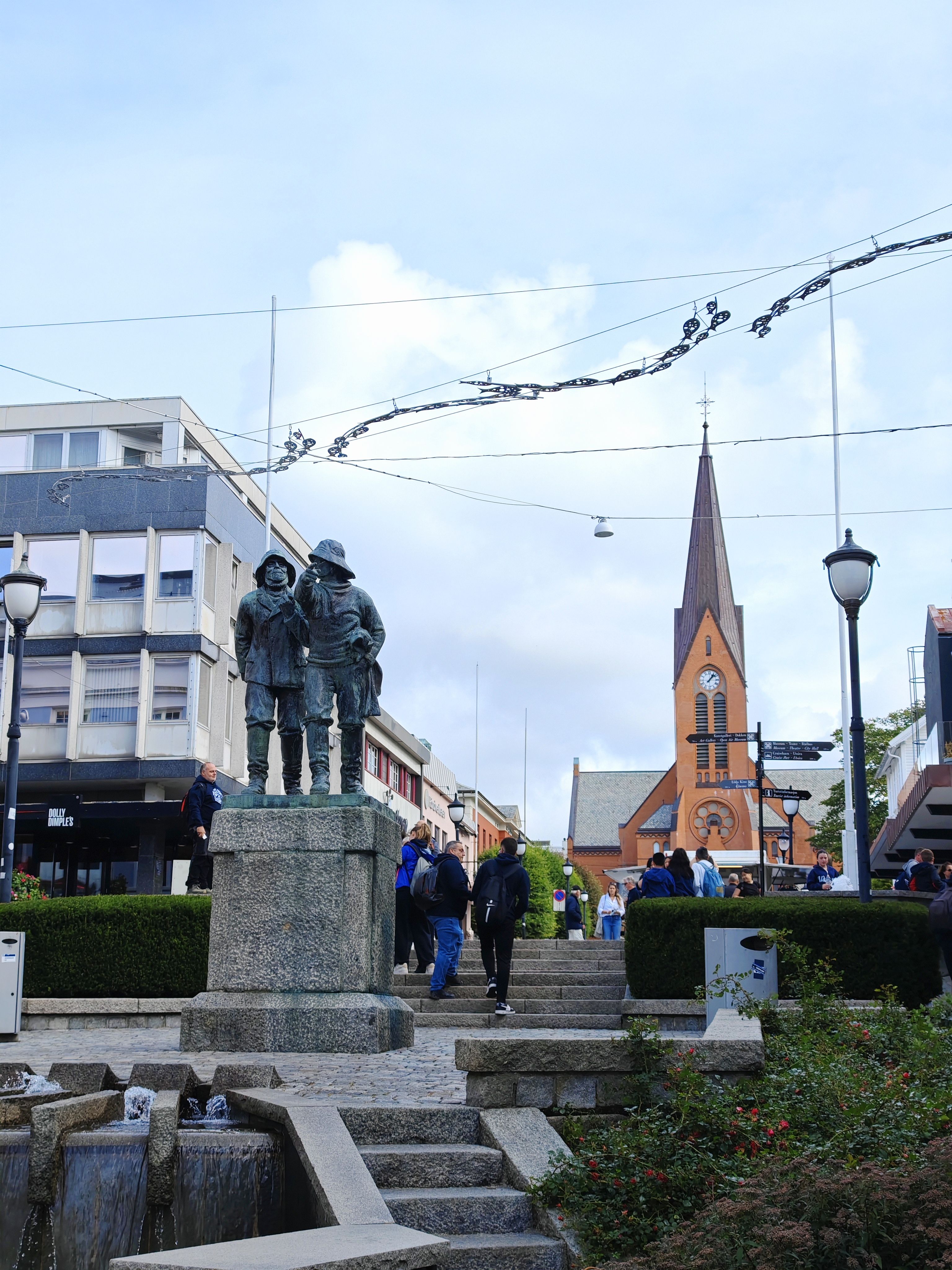本地的地标建筑!Vår Frelsers 教堂,还有前面的俩钓鱼佬铜像