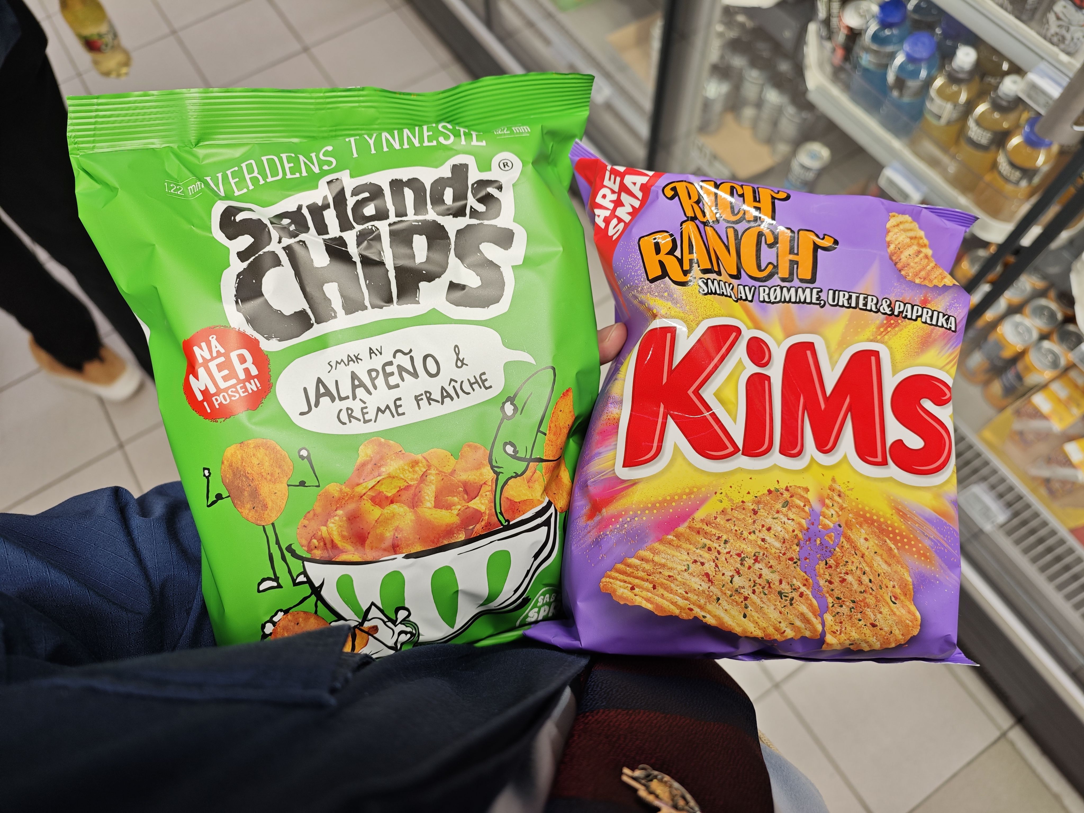 既然说励志吃遍世界薯片 那怎么能少了挪威的本地薯片!两袋薯片65挪威克朗,差不多5.5欧(在法国的话大概只要3欧)回头品鉴一下!