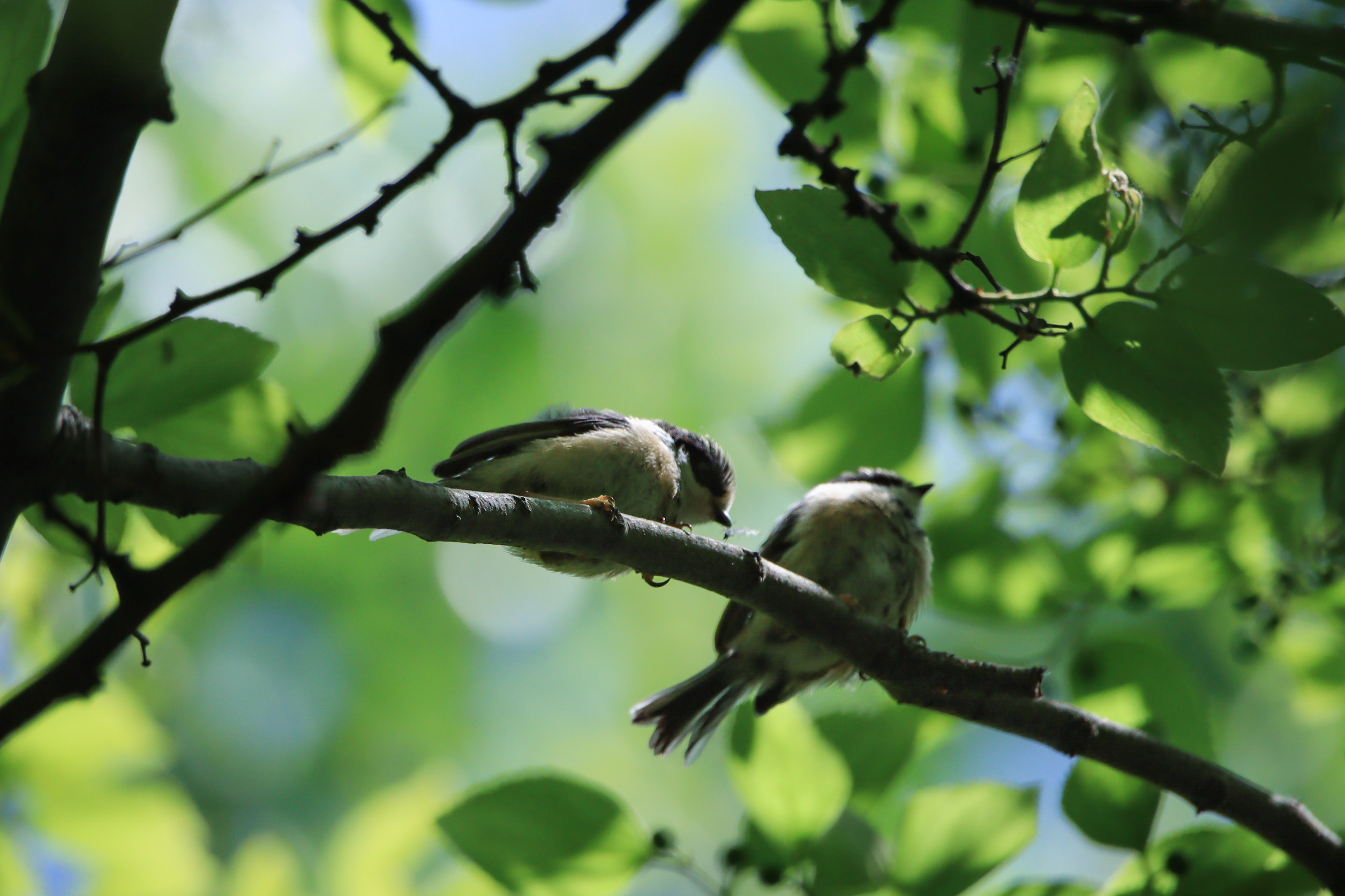 三只雏鸟排排坐结果对焦到树枝,只有这张还行