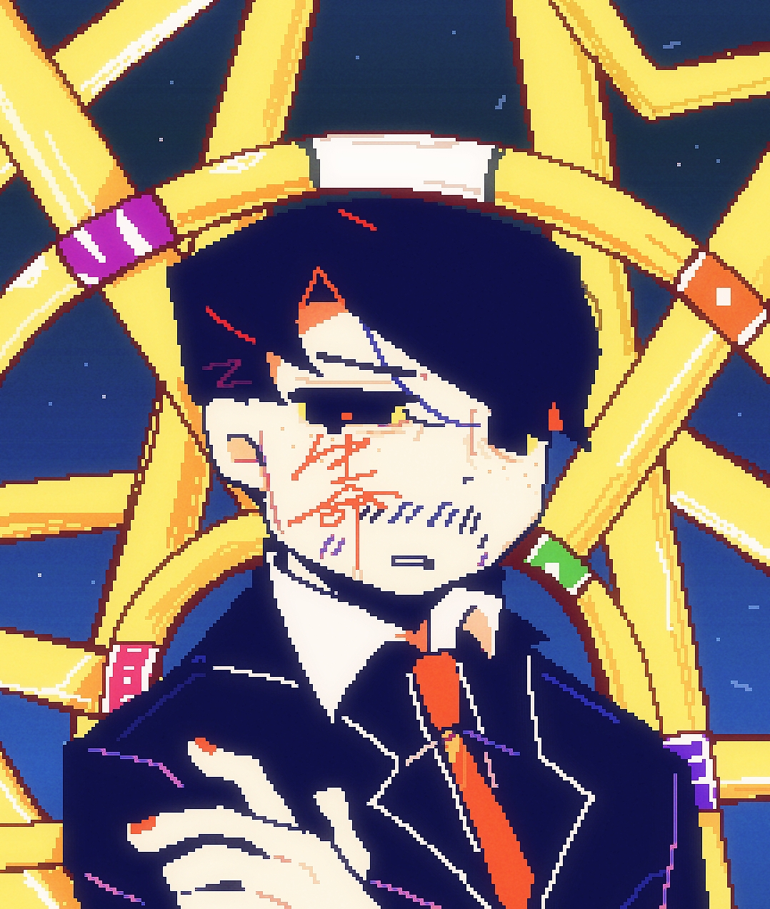 你这人怎么用像素点笔刷画二值笔的画啊( `д´)σ