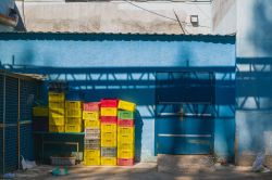 县城夏天很多店面晚上会摆地摊,白天不用的时候就把桌椅摞在路边