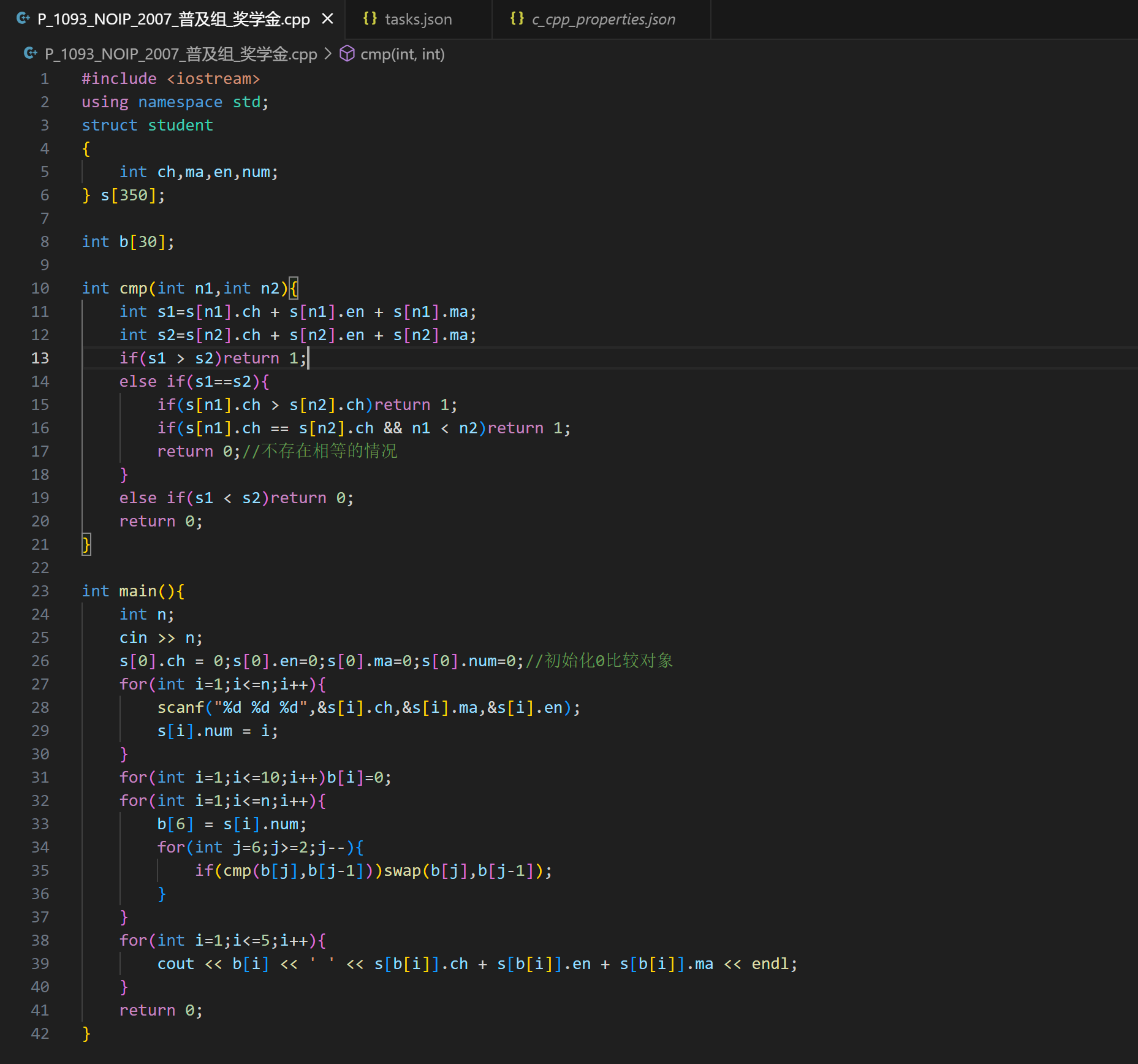 模板题,懒得自己写排序算法就用了std的sort函数,过(`ε´ )