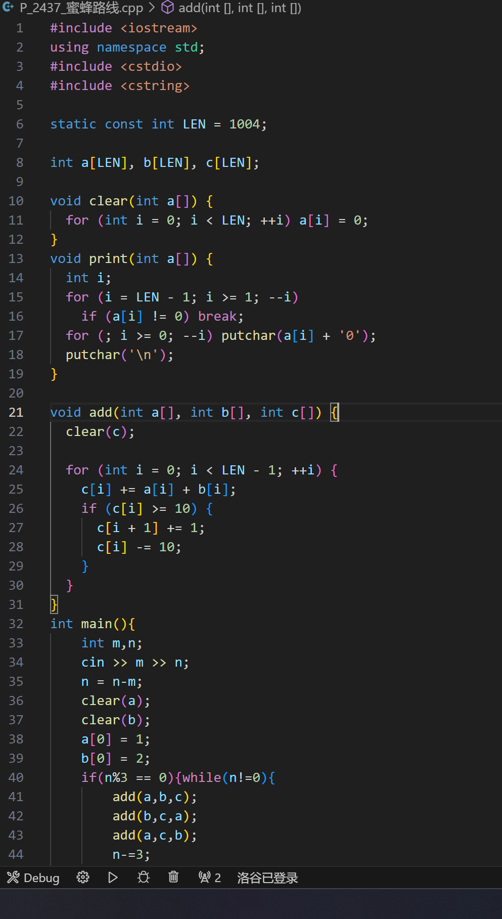 看见377这个数据就知道是斐波拉契数列了,但是wa了才意识到要用高精度,直接把oiwiki的模板拿来用了