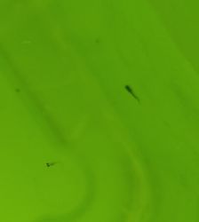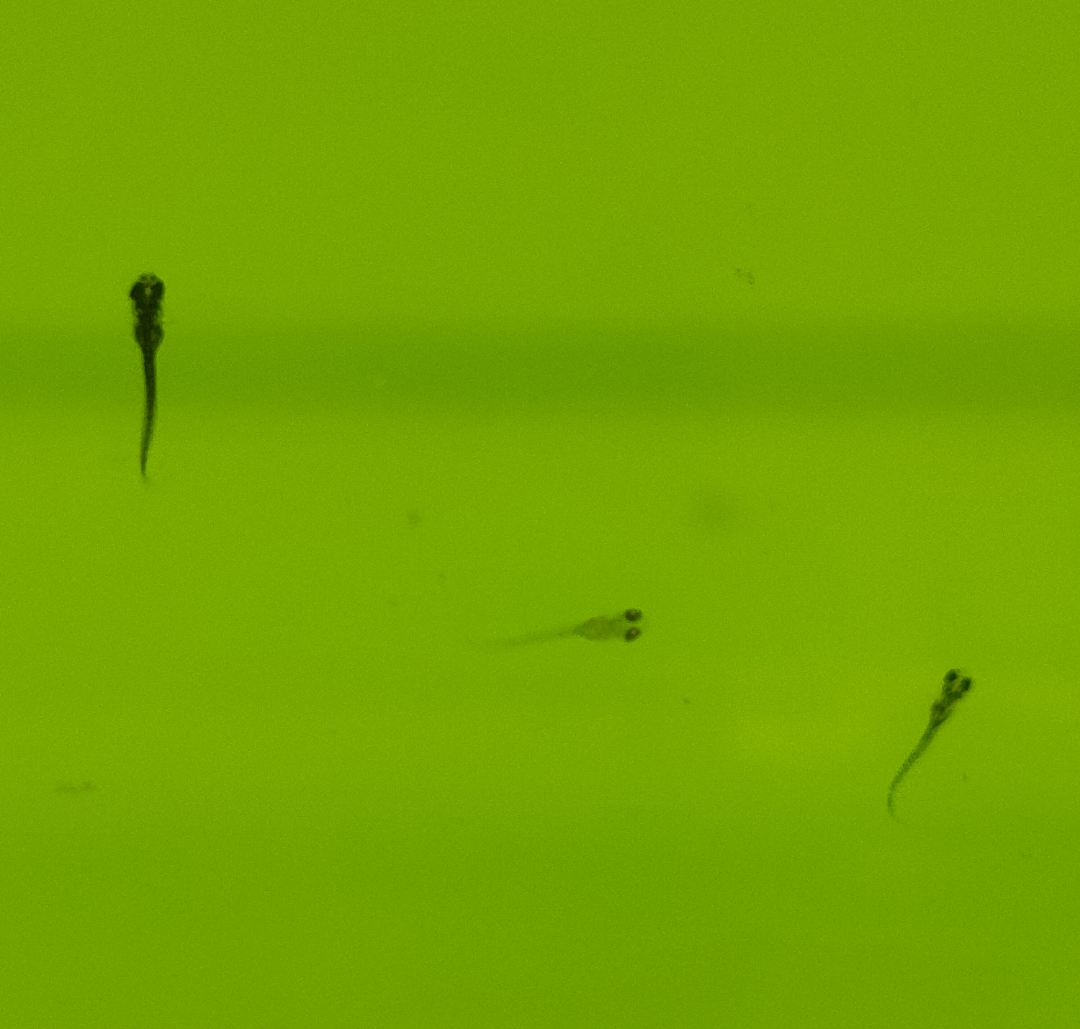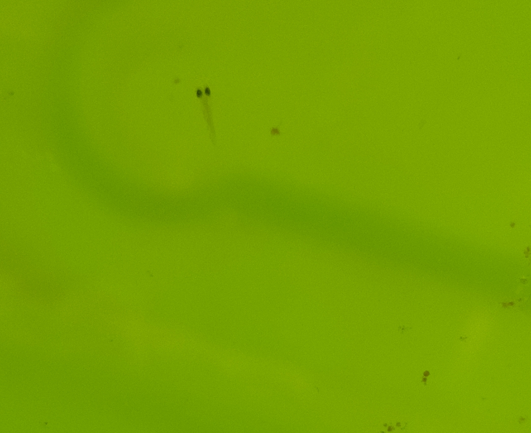 起床了,鱼苗好像把油膜吃了?水比昨晚亮亮一点。爱好是挑战比自己嘴大的饲料。