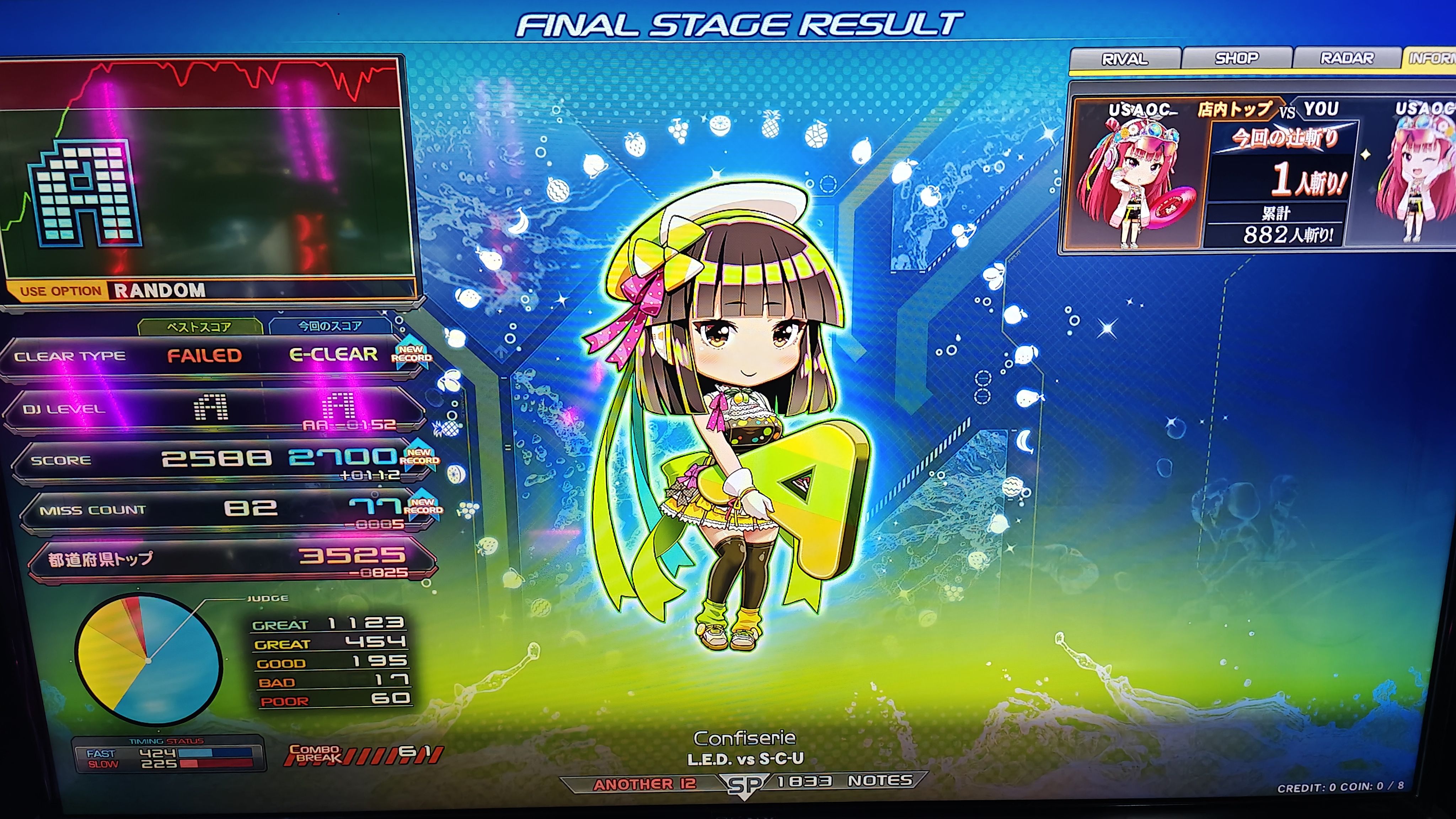 Confiserie 绿灯,第一次最后撑住了( ゚∀。)