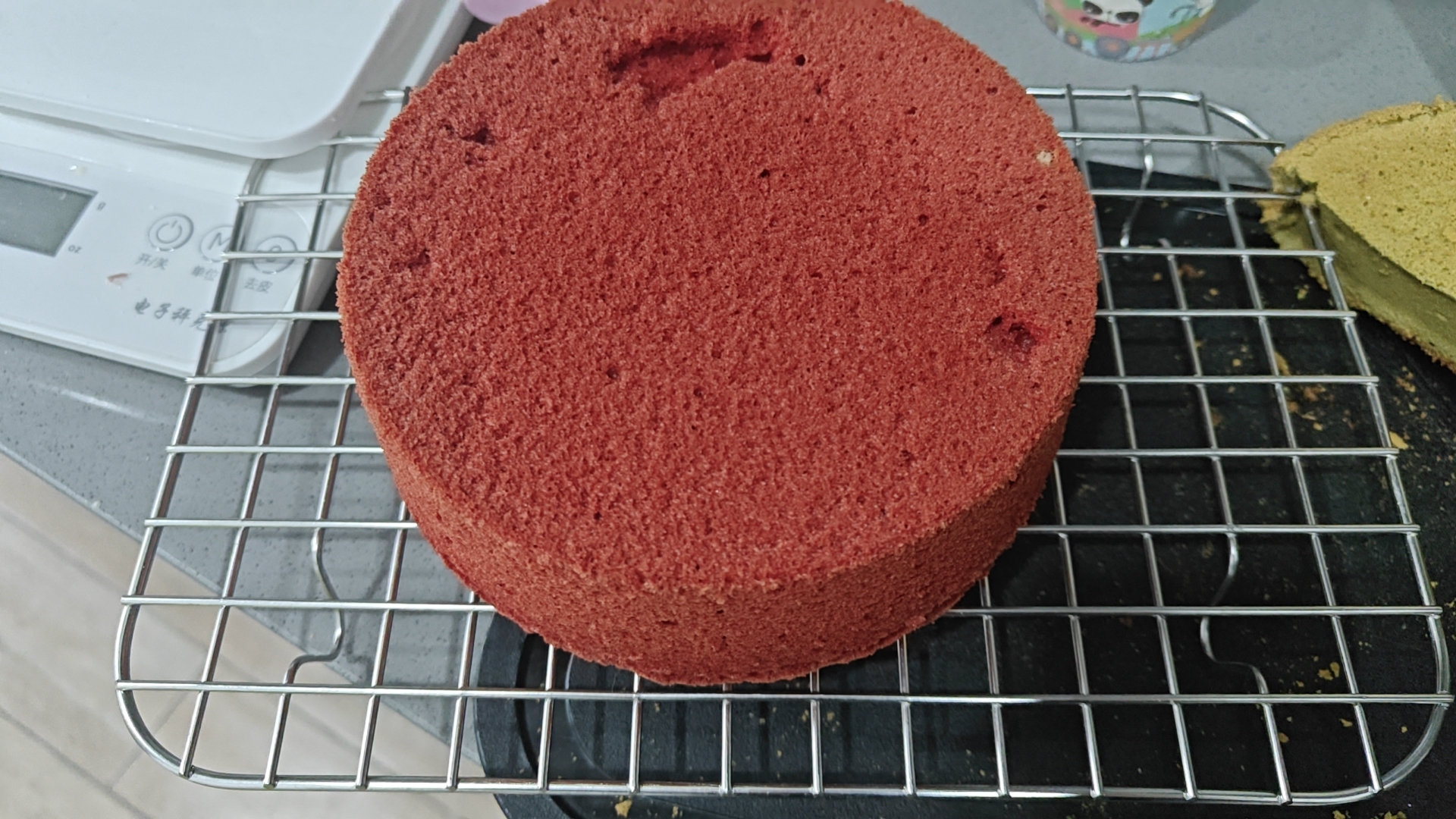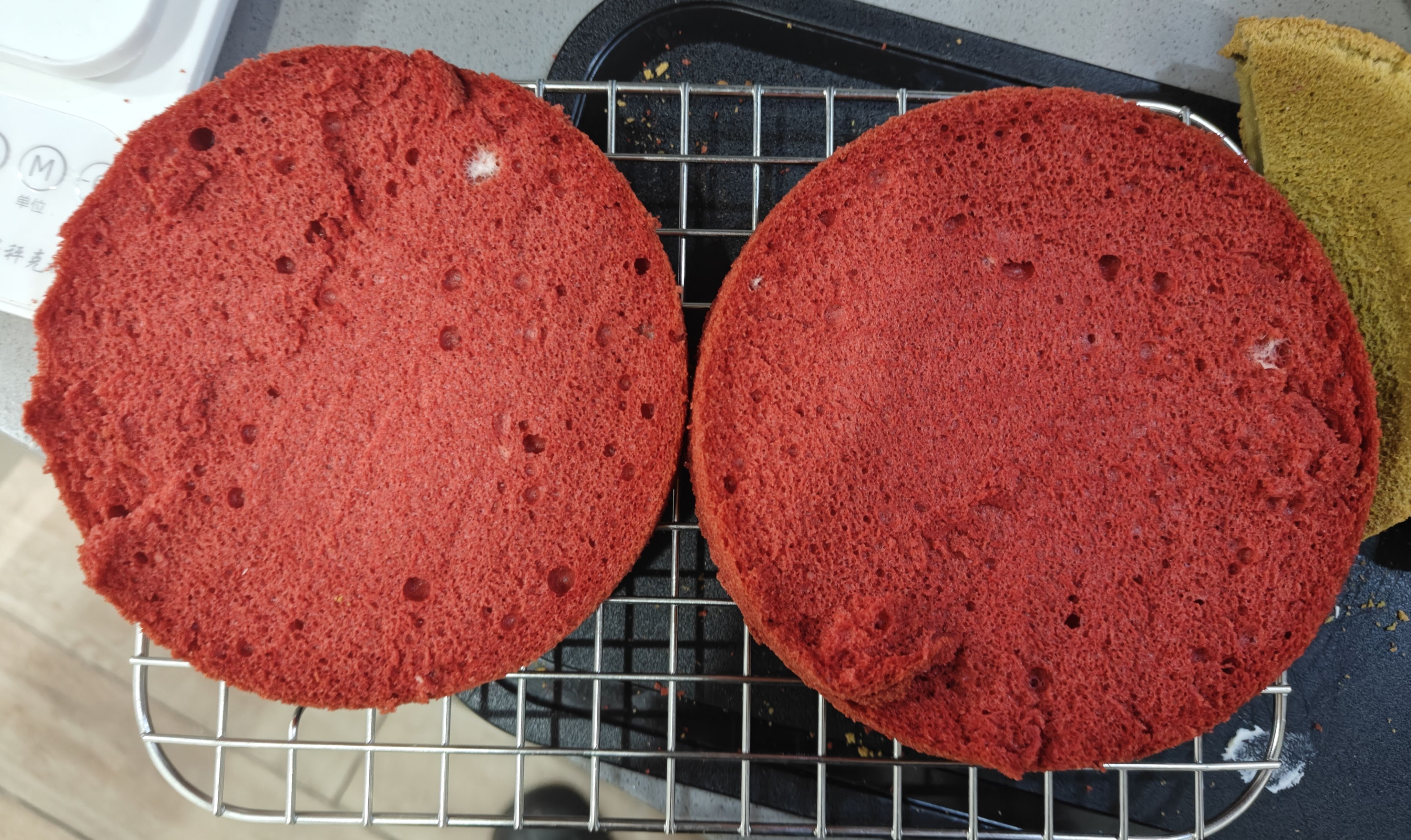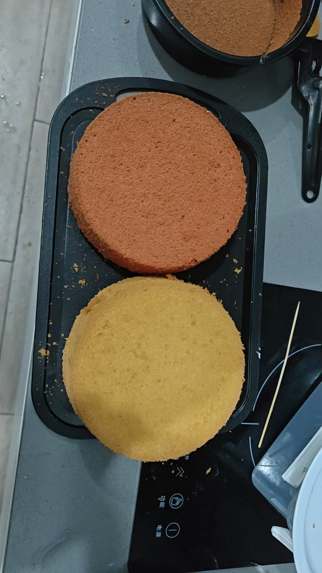 小烤箱太麻烦了只能放下一个六寸模子,我两个模子来回烤