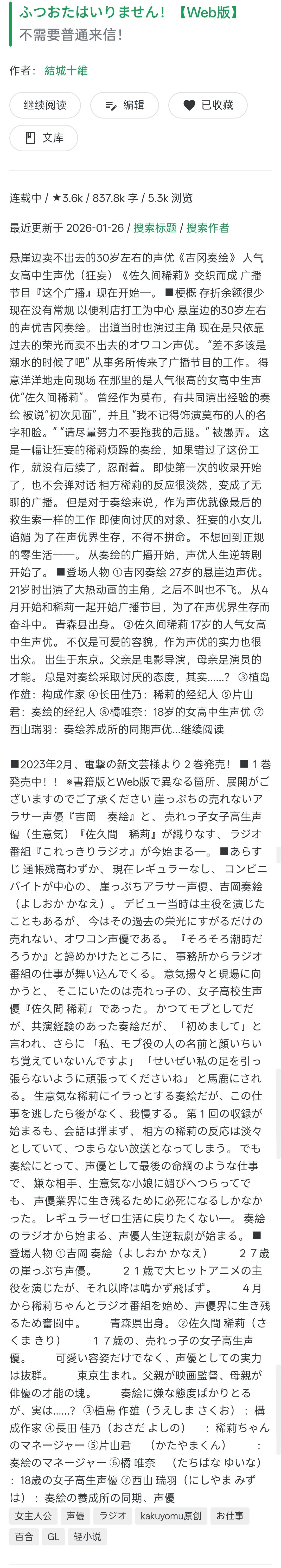 最近复活又开始连载了所以拿出来说一下。不管是声优痴还是百合豚都不应该错过的一部。