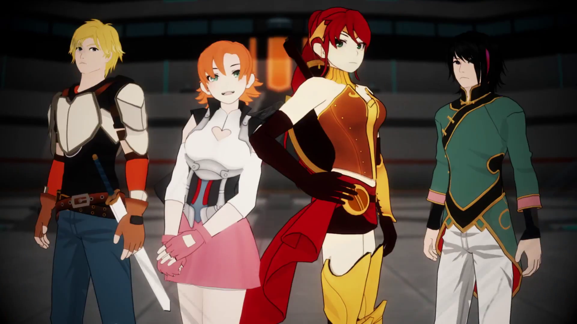 画面正好捕捉到Pyrrha飞出标枪救下Ruby后,她带着Jaune一起往前冲锋的画面。