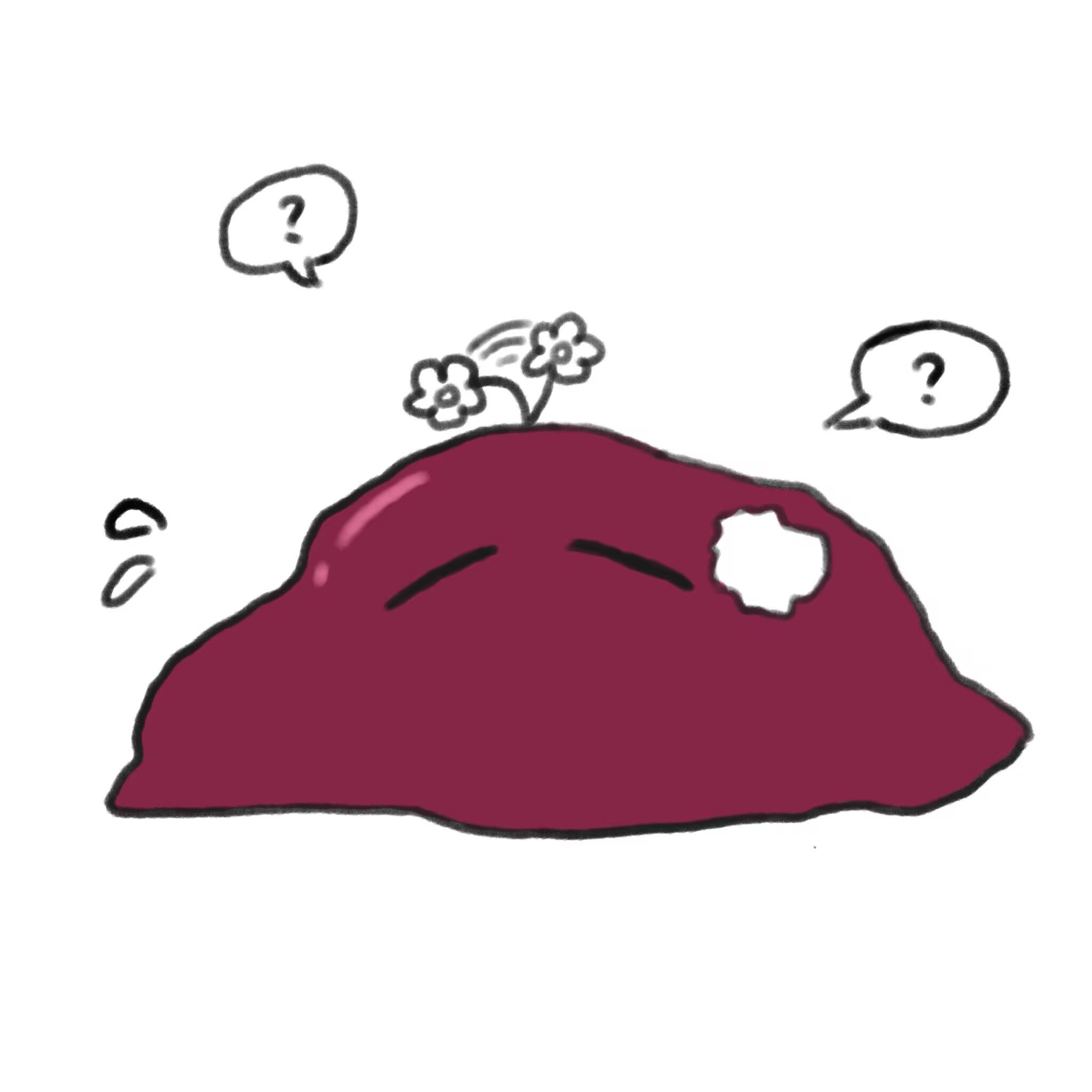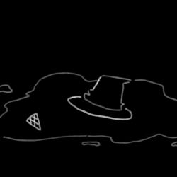 一个破帽子和空甜筒,一摊液体。