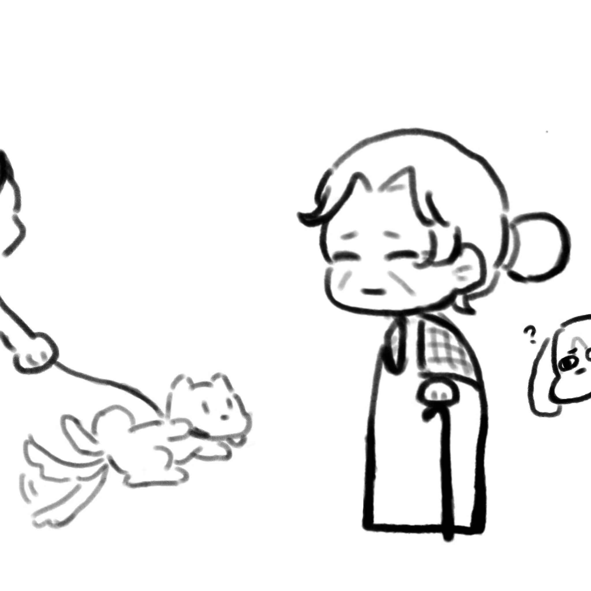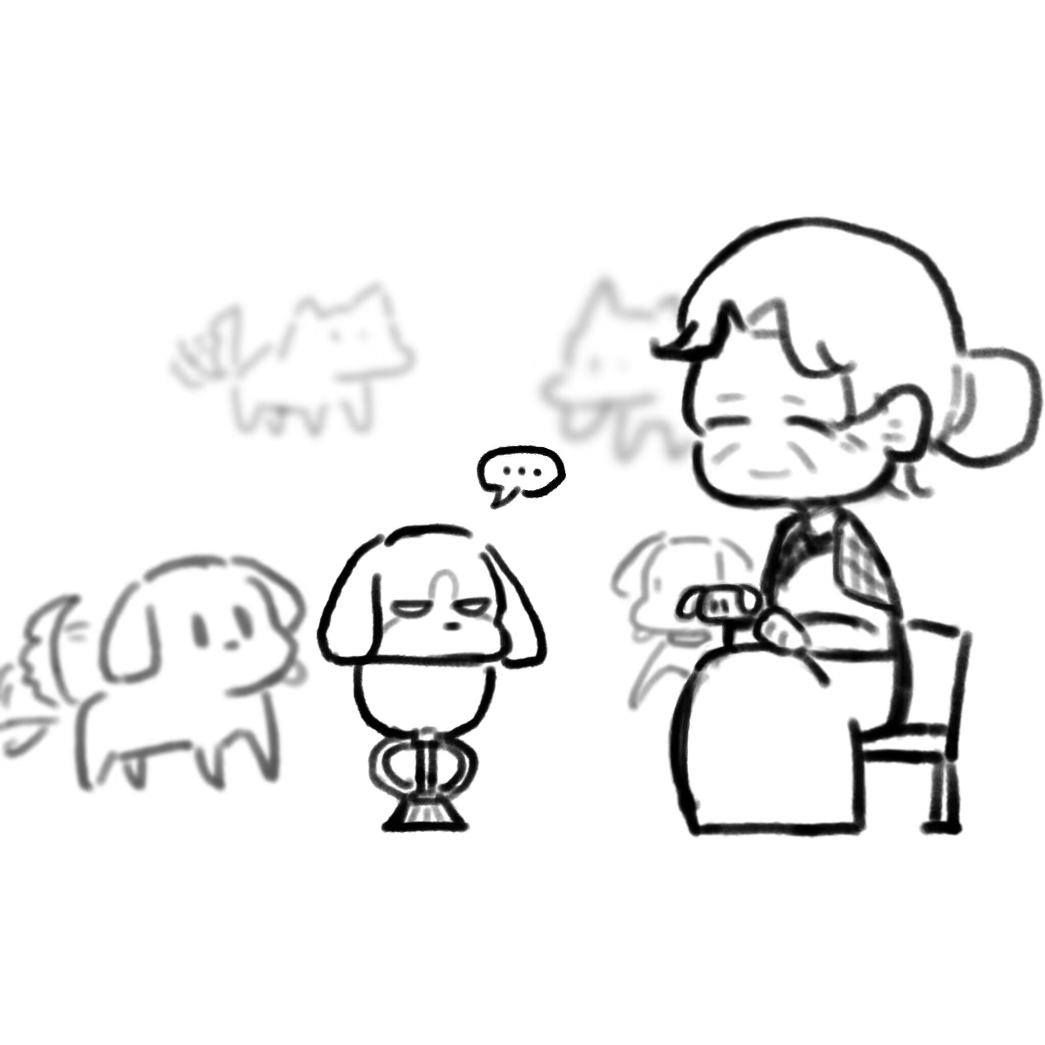 老婆婆很开心有新的小狗朋友。