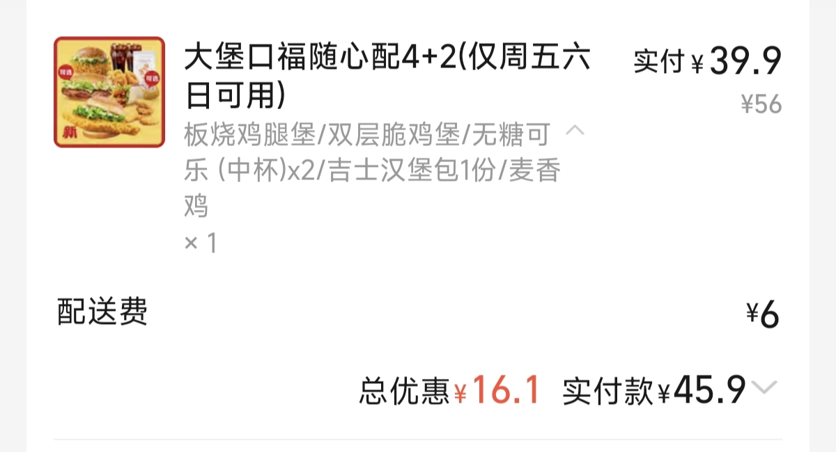 昨天放纵日,爽食炸鸡,今天中午还没吃,51.95