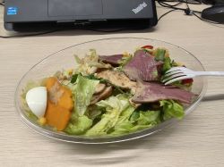 盒马买了打折沙拉,只要11,先吃回草|-` )
