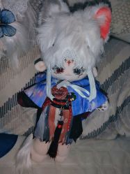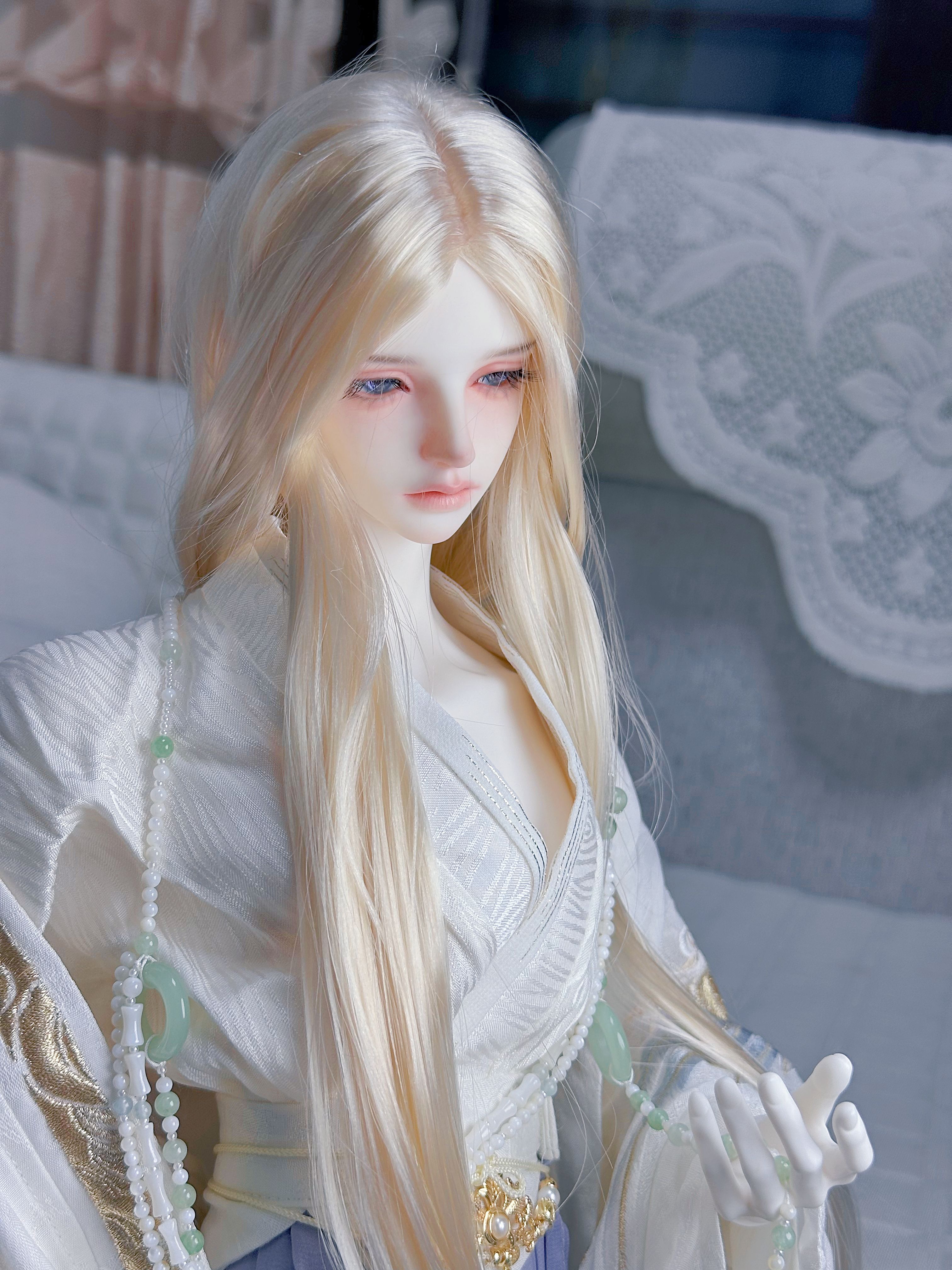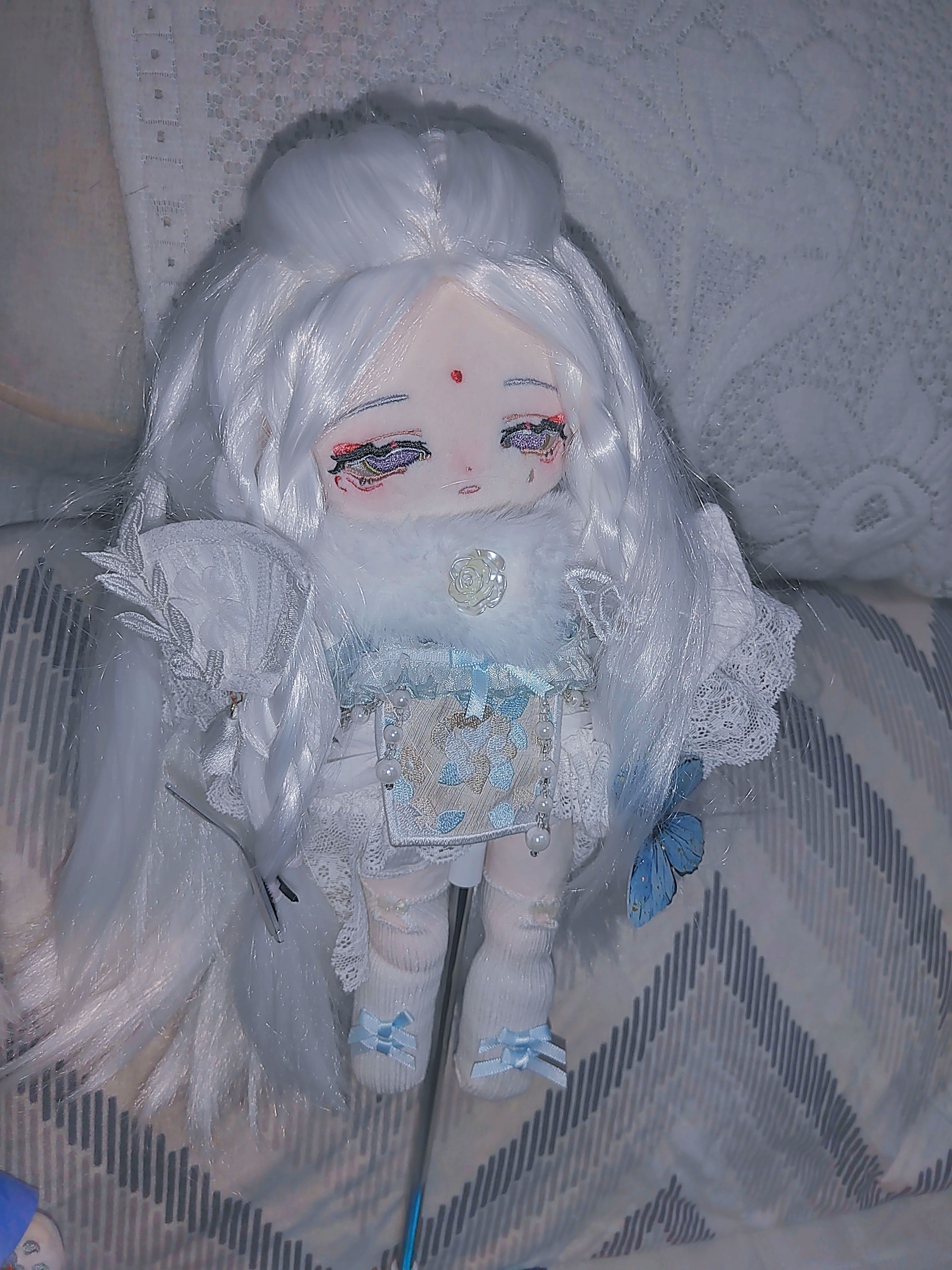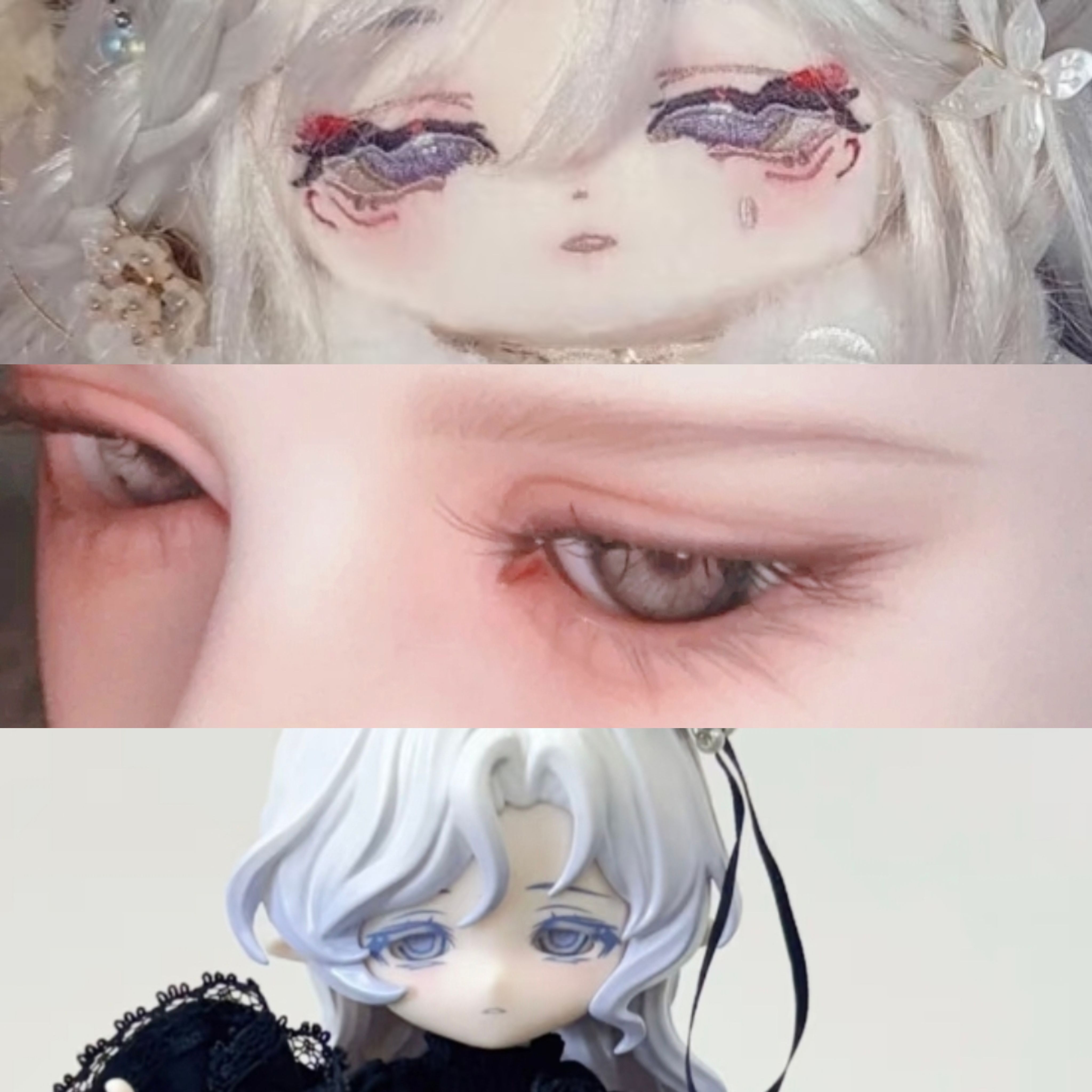 依次是我用来代餐我推的棉花娃娃(官图,我的换过头皮,发色不是银灰是纯白……后来发现貌似银灰更合适,orz)