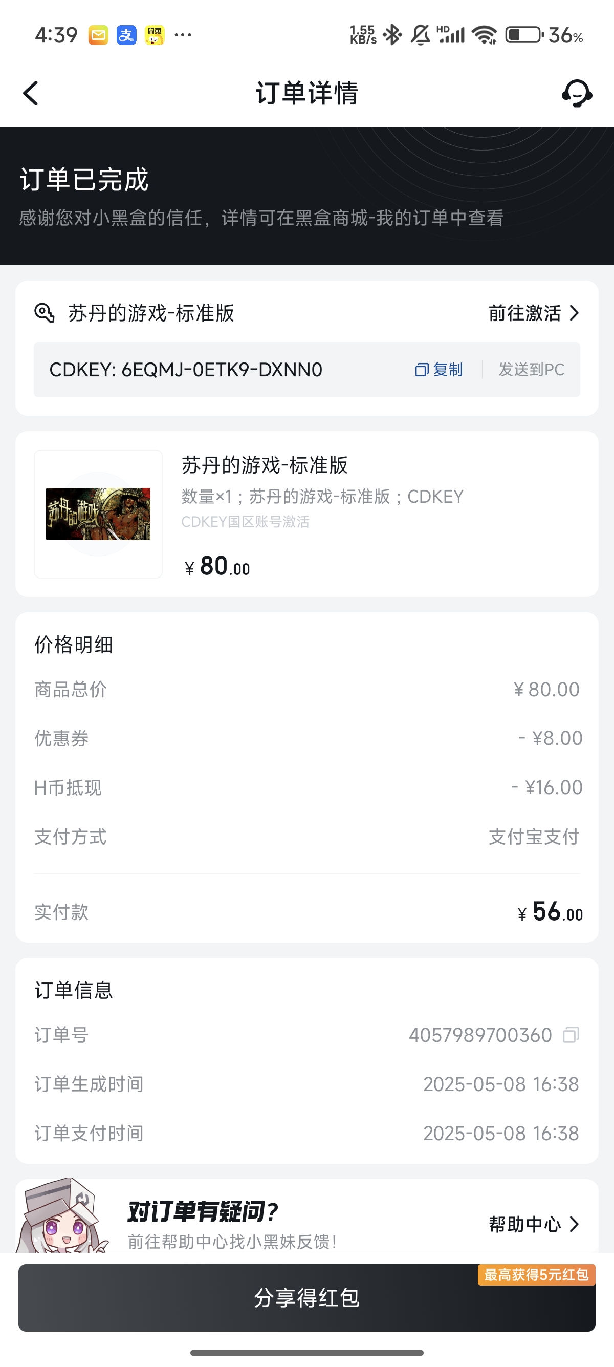 所以这个串暂且作为游戏体验串,从明天开始我会购买游戏并且利用一部分空闲时间进行游玩