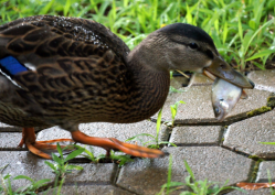 鸭子几乎是毫不犹豫地丢下了玉米,伸长了脖子,用那扁平的鸭嘴,一口就将那条活生生的鲫鱼吞下了肚!